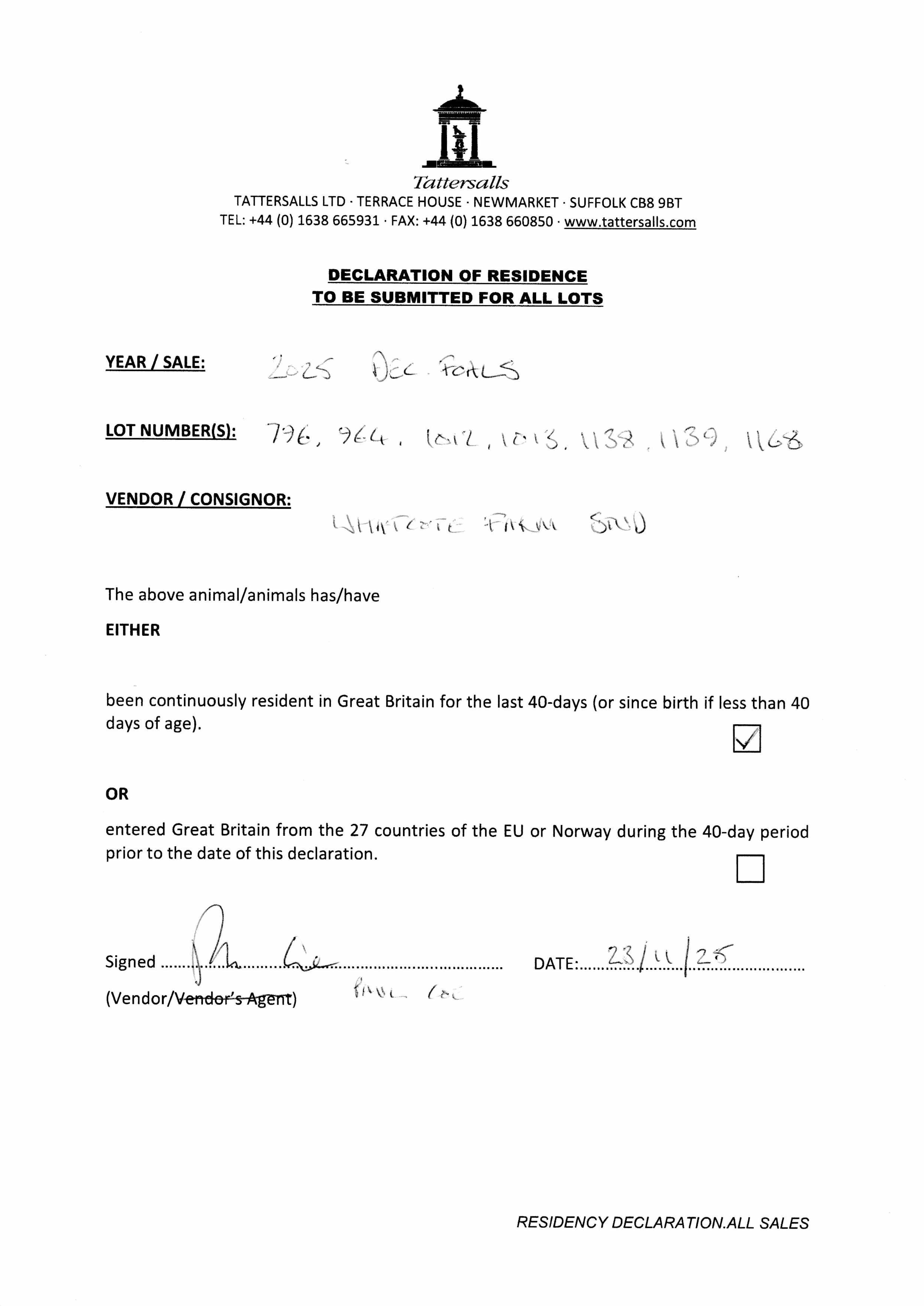 Consignor: Whatcote Farm Stud