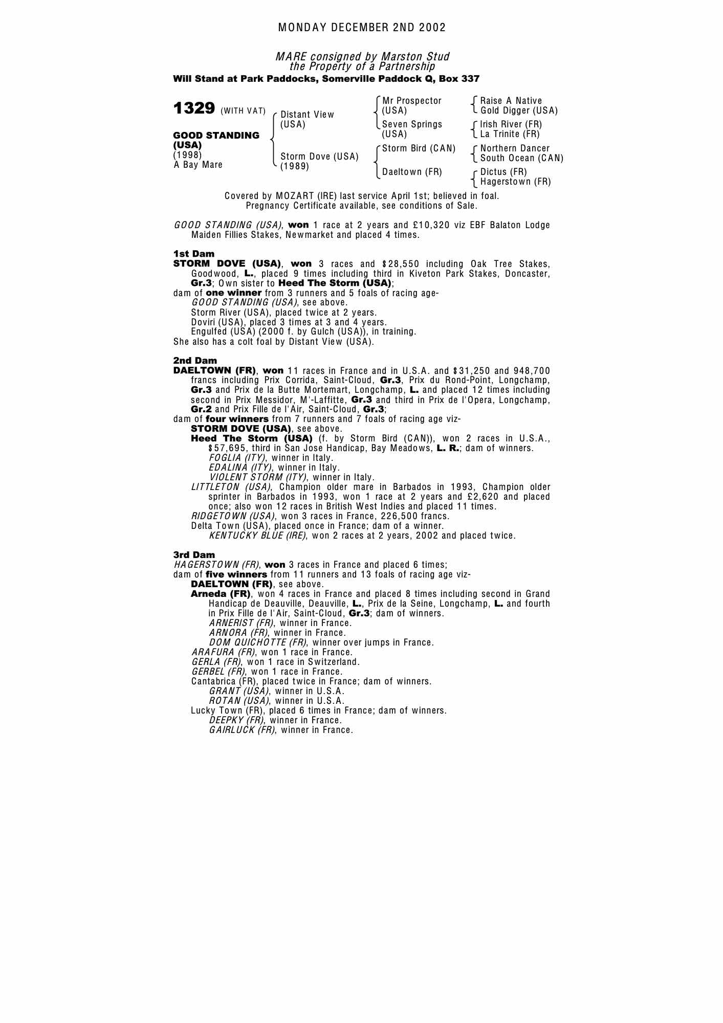December Mare Sale 2001 lot 1611 Good Standing (USA) (F.), Juddmonte Farms=>BBA Ireland 16,000 gns