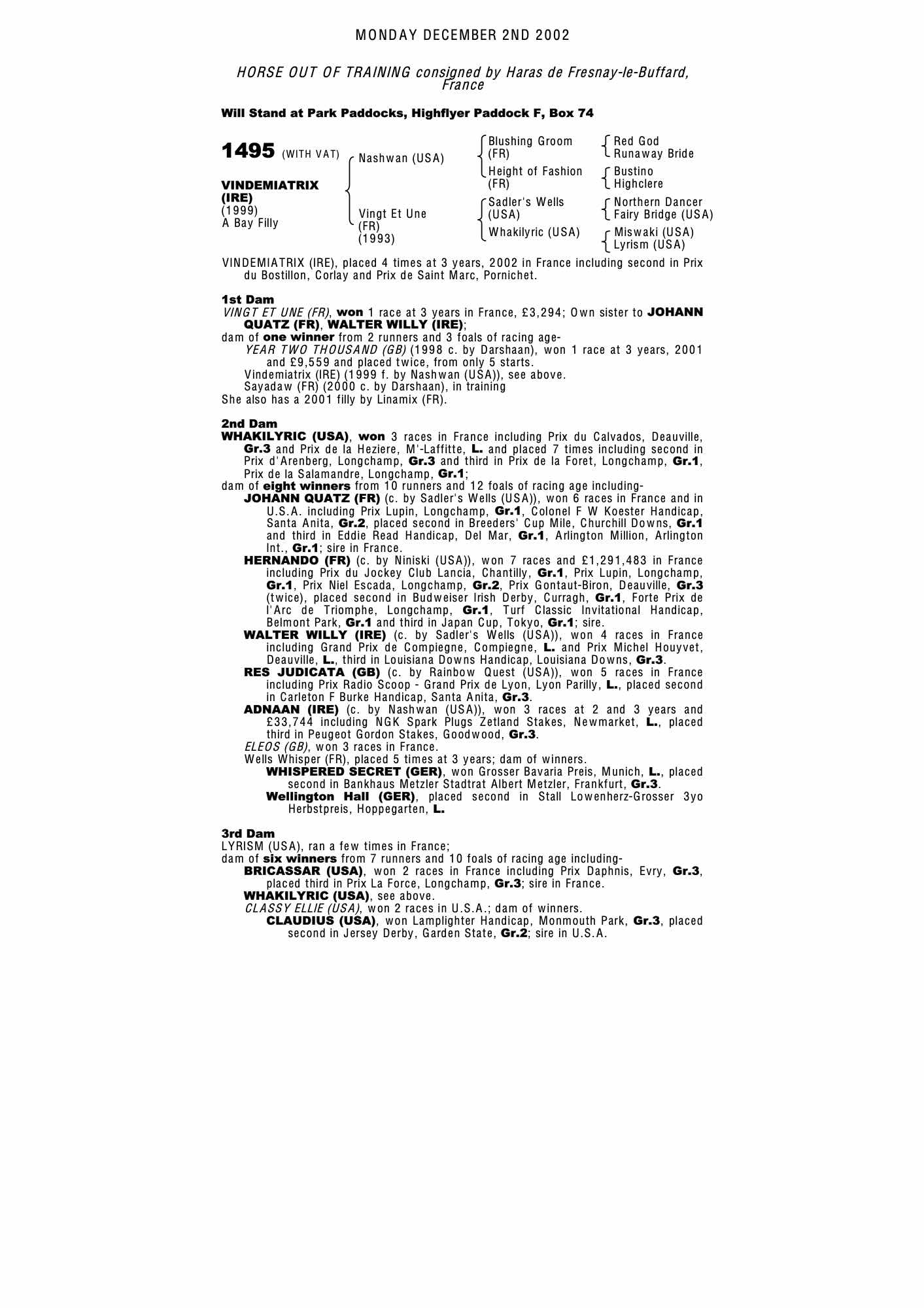 July Sale 2002 lot 267 Year Two Thousand (GB) (C. by Darshaan), Warren Place Stables=>Arnfinn Lund 26,000 gns