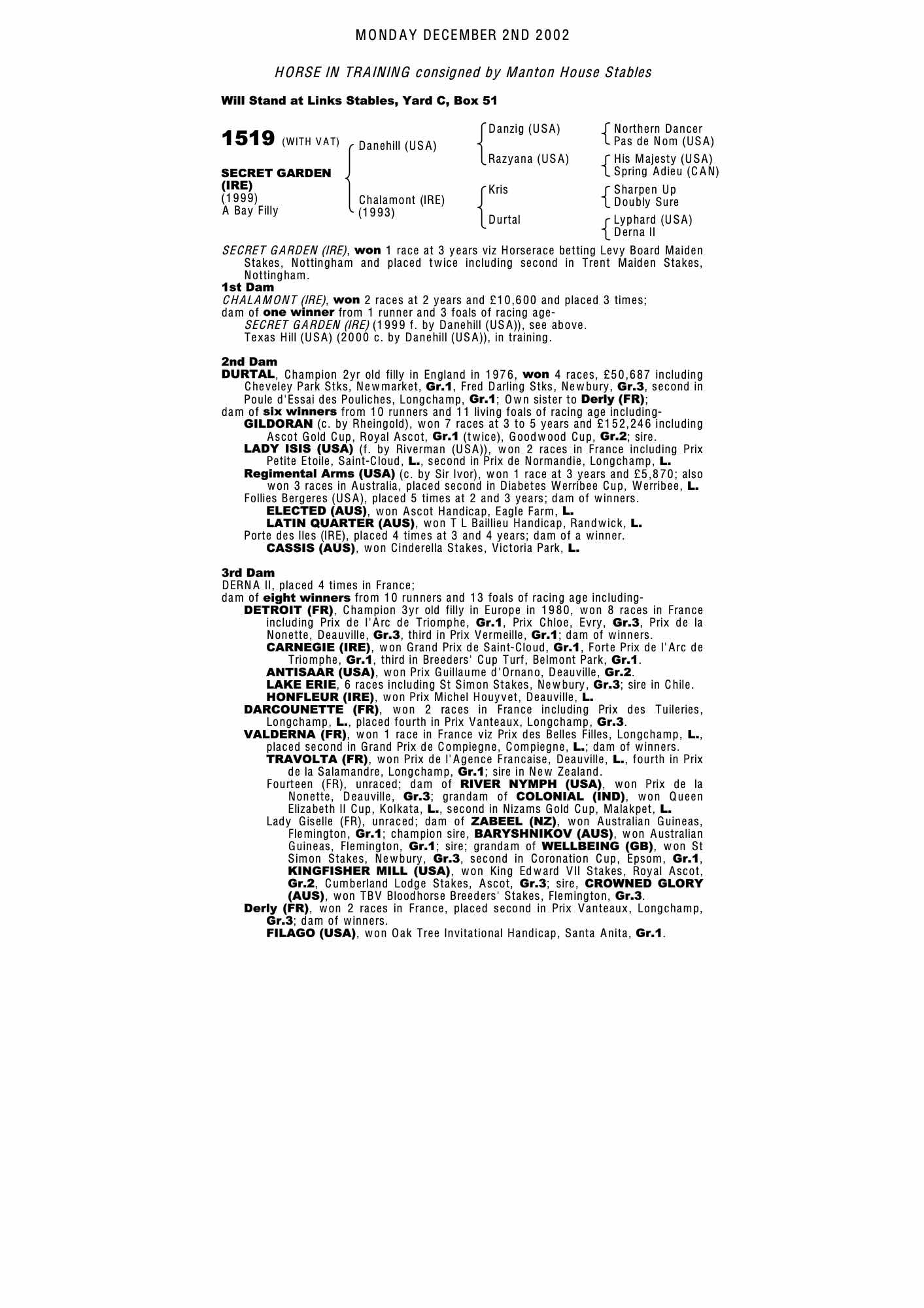 Consignor: Manton House Stables