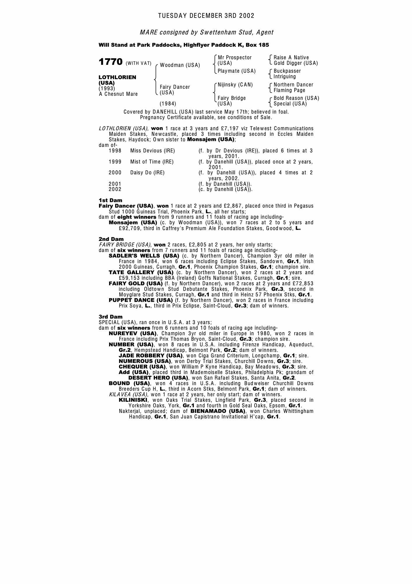 December Mare Sale 2008 lot 1715 Lightning Queen (USA) (M. by Thunder Gulch (USA)), John Troy, Agent=>Blandford Bloodstock 120,000 gns
