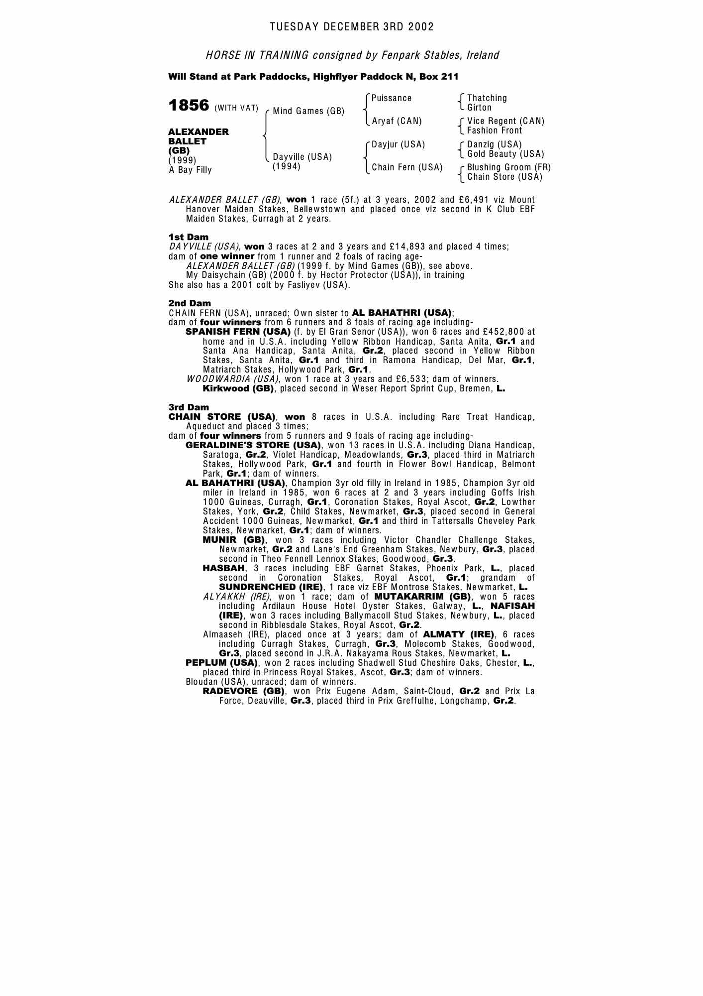 October Yearling Sale, Book 1 2003 lot 180 F. by Singspiel (IRE) 2002, Bearstone Stud=>McKeever St Lawrence 20,000 gns