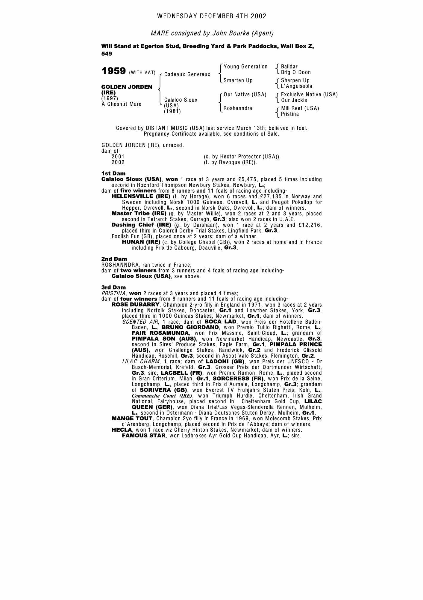 December Mare Sale 2000 lot 1913 Golden Jorden (IRE) (M.), Lavington Stud=>Margaret O'Toole 20,000 gns