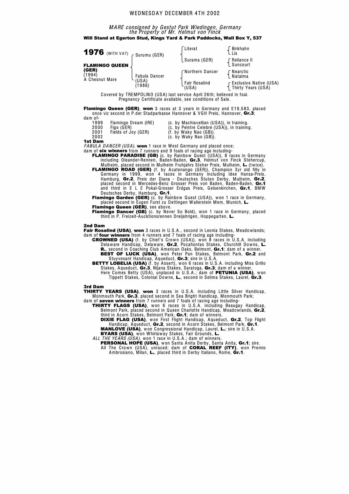 December Mare Sale 2004 lot 1708 Flamingo Flower (USA) (M. by Diesis), New England Stud=>York Stutteri 75,000 gns