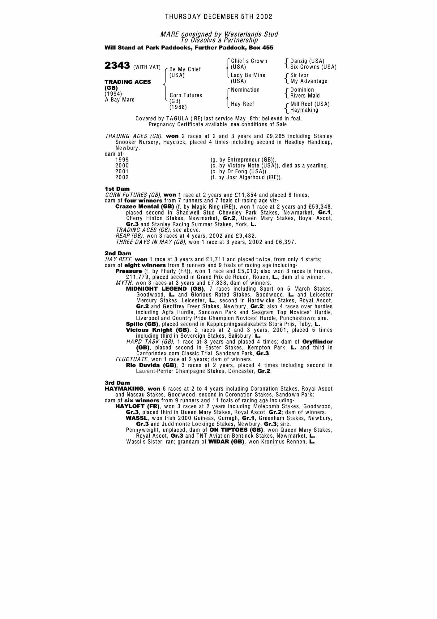 December Mare Sale 2002 lot 2408 Springs Eternal (GB) (M. by Salse (USA)), Limestone Stud=>Lot Not Sold