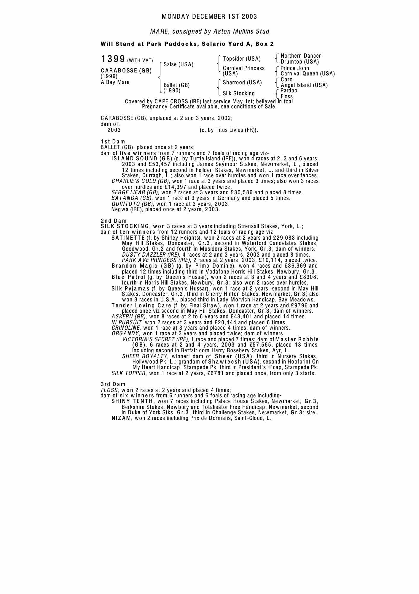 December Mare Sale 2002 lot 2359, Trickledown Stud=>Vendor 10,000 gns