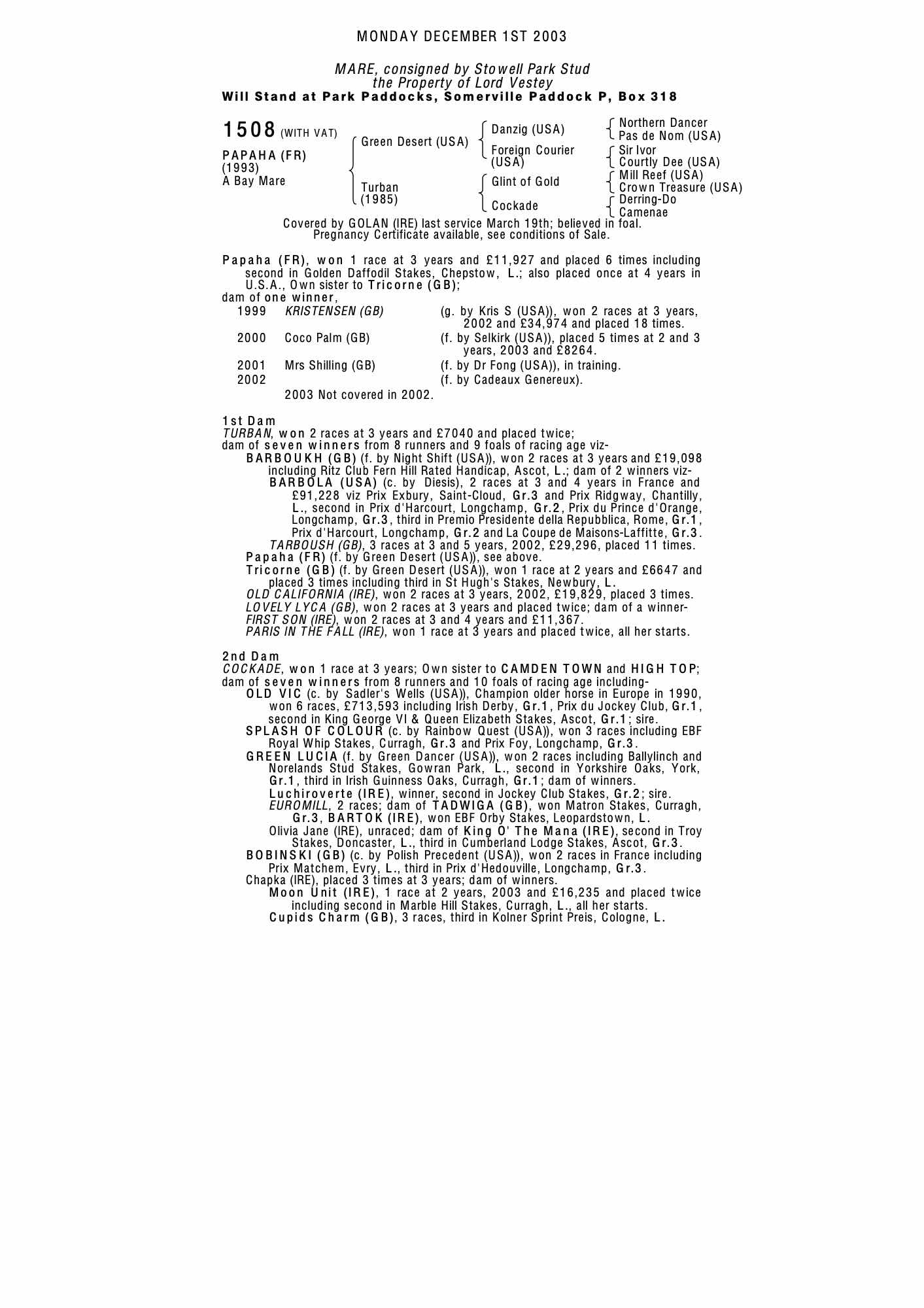 December Mare Sale 2002 lot 1348 Lovely Lyca (GB) (M. by Night Shift (USA)), Stowell Hill Stud=>Vendor 39,000 gns
