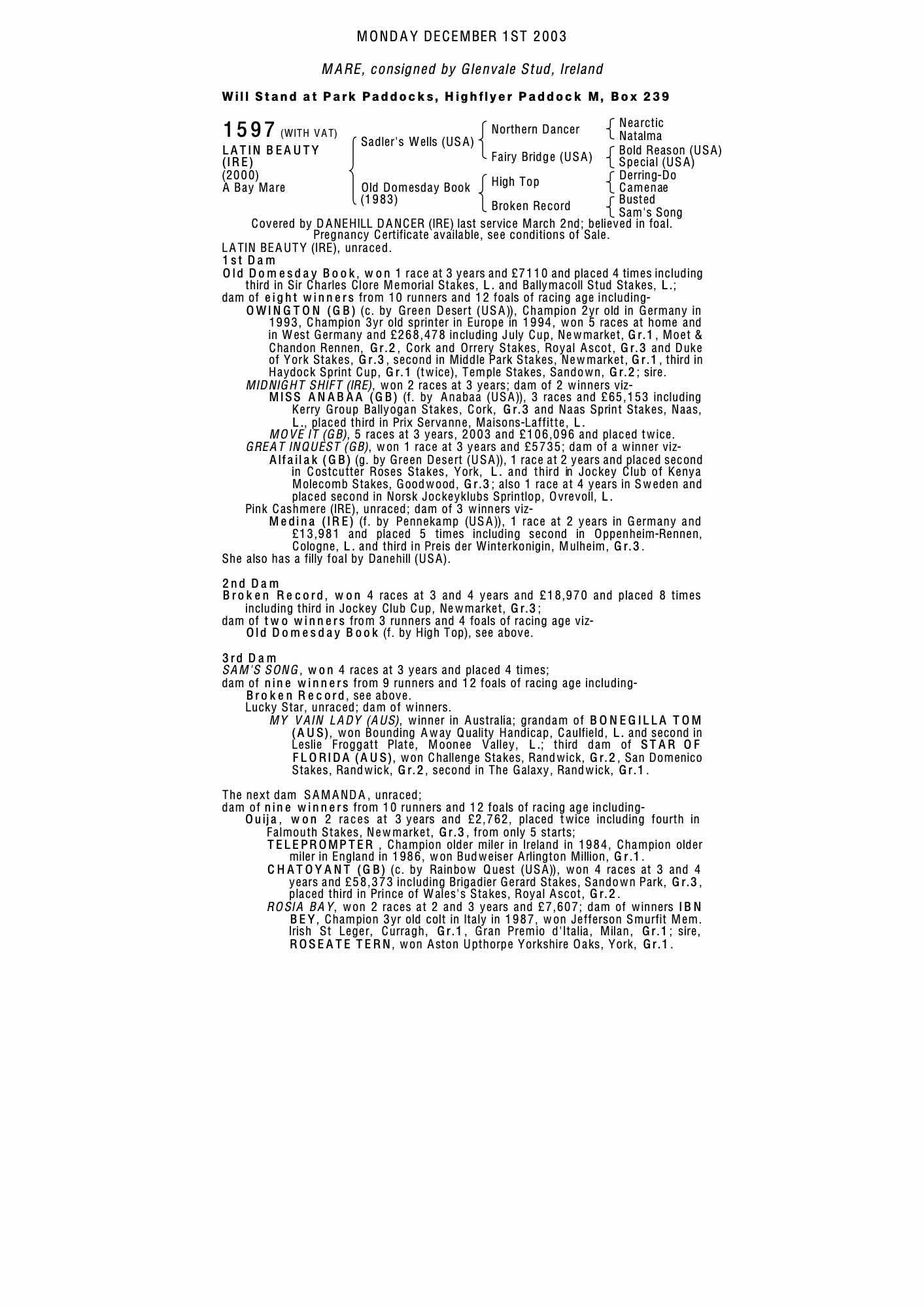 December Mare Sale 2002 lot 1666 Lady Helen (IRE) (M. by Salse (USA)), Voute Sales, Agent=>Lot Not Sold 23,000 gns