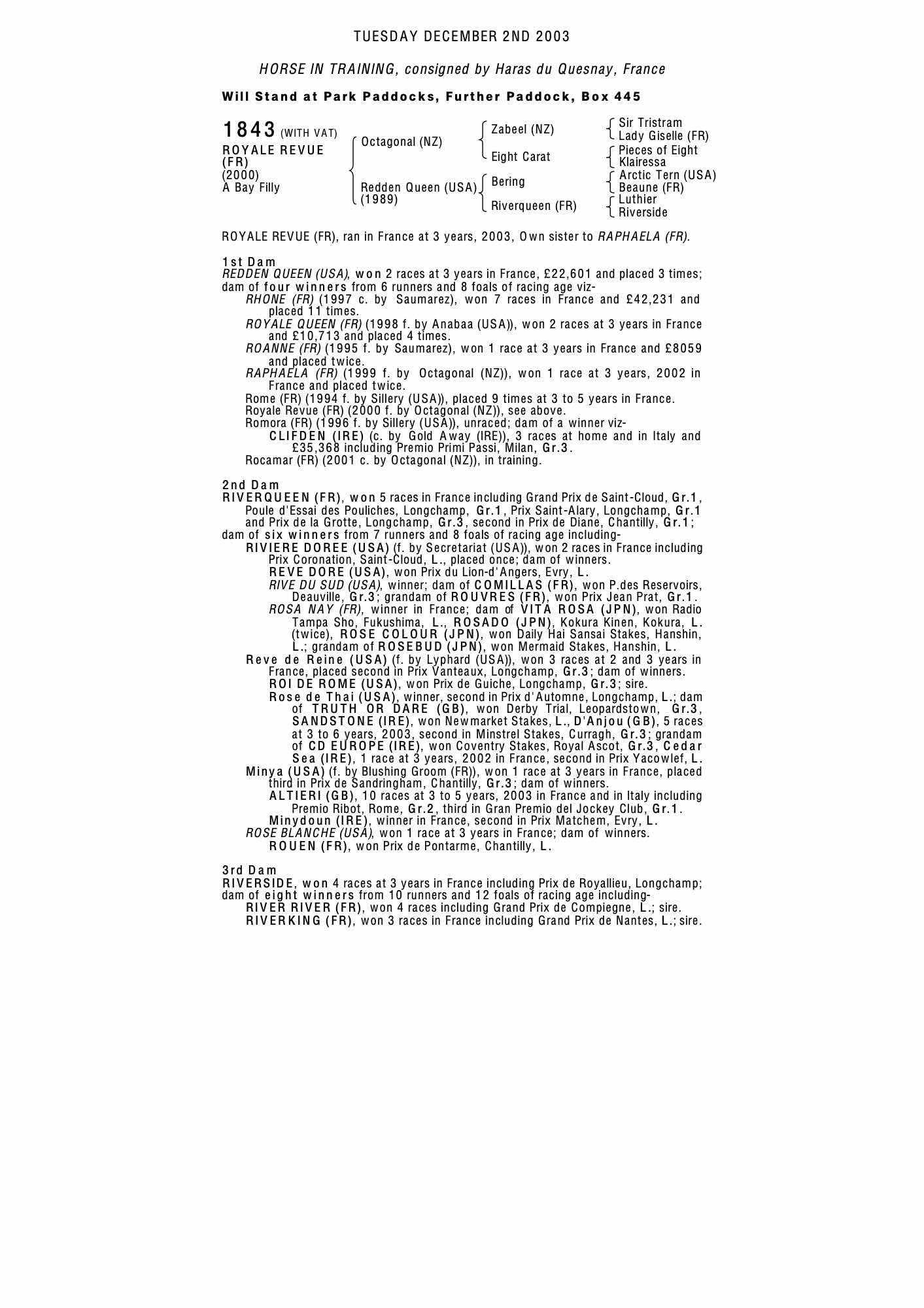 December Mare Sale 2006 lot 1885 Raphaela (FR) (M.), Haras du Quesnay, France=>Langham Hall Stud 14,000 gns