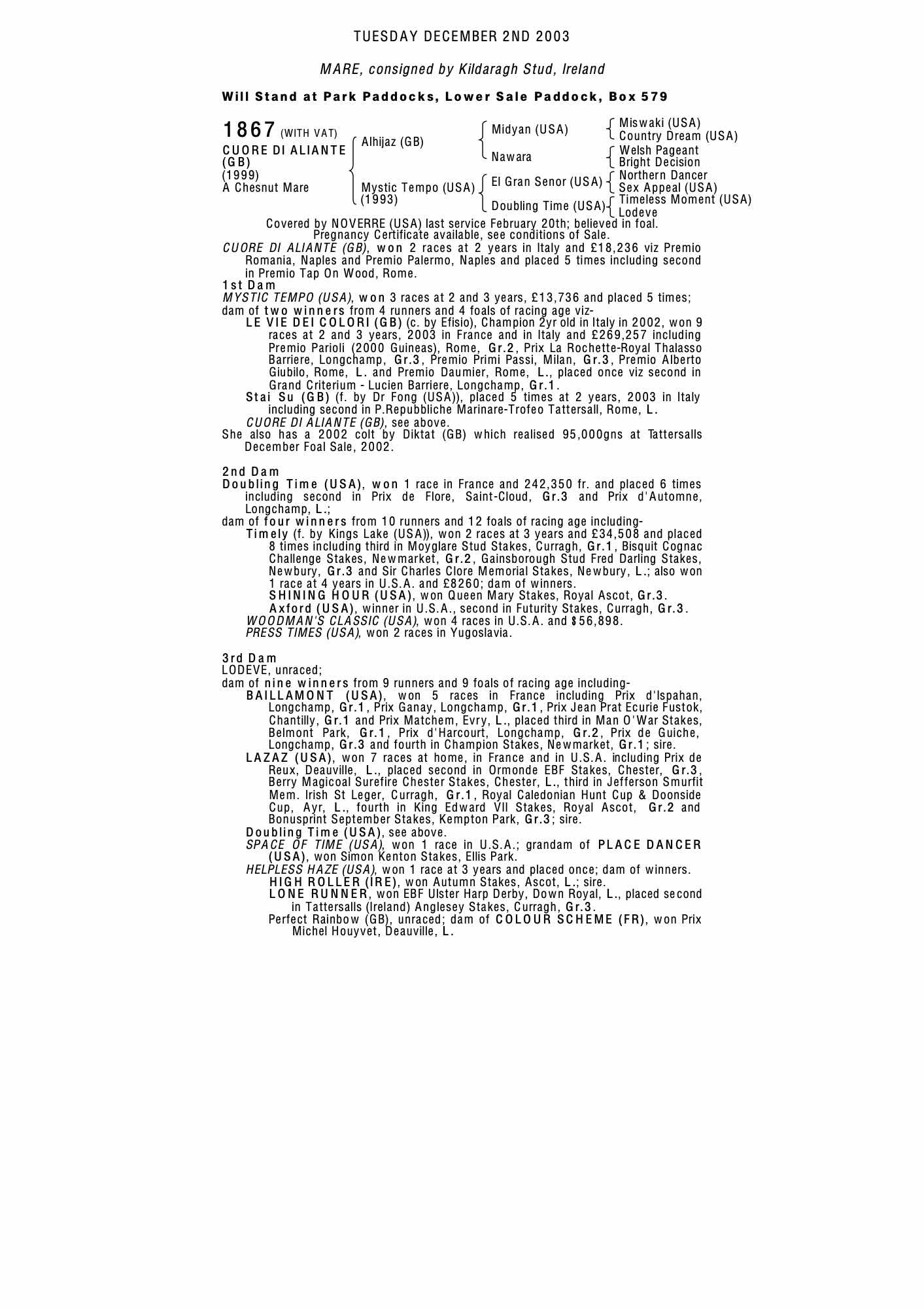 December Mare Sale 2004 lot 1477 Bel Tempo (GB) (M. by Petong), Fernham Farm (Agent)=>Lot Not Sold 28,000 gns