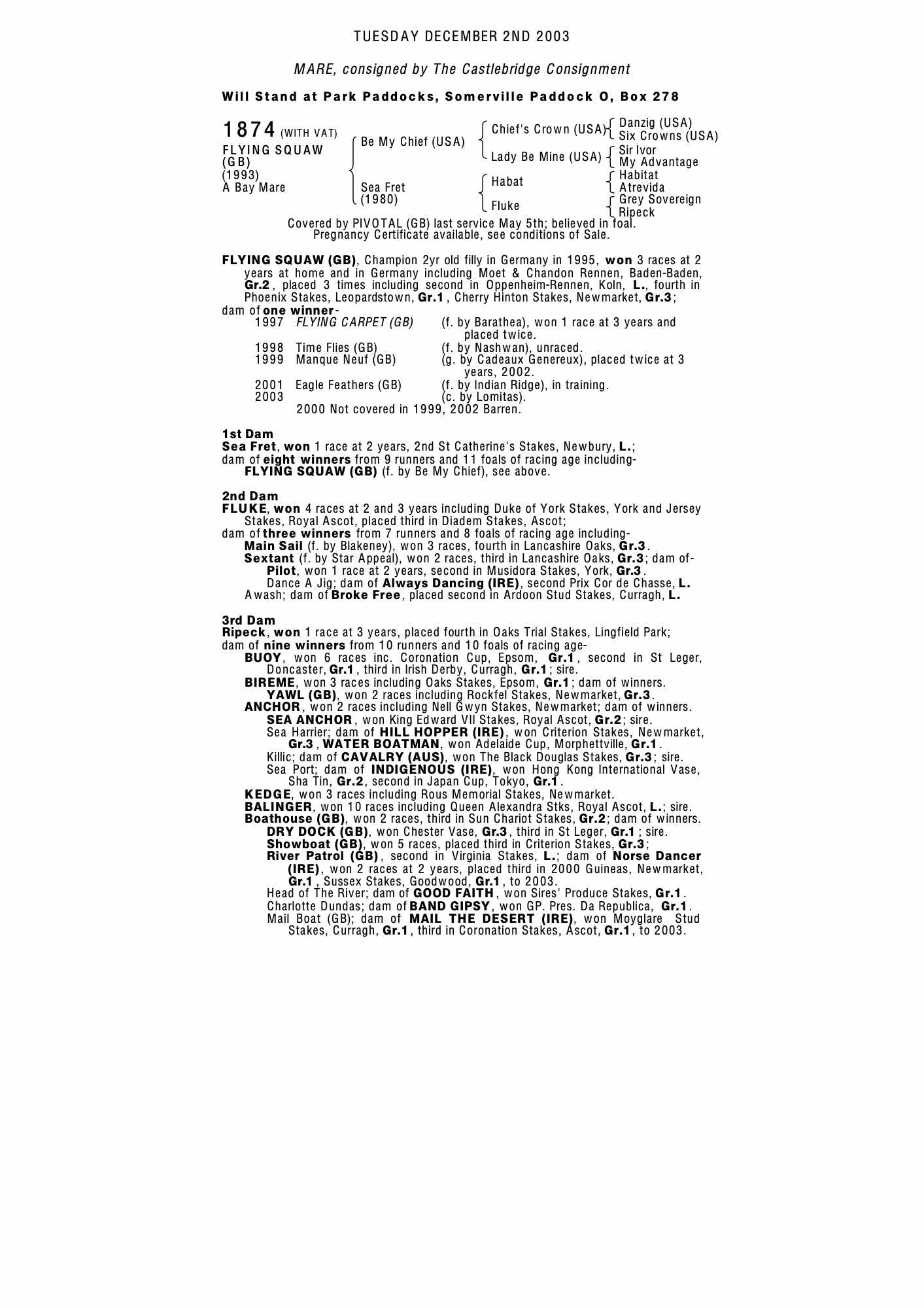 December Mare Sale 2002 lot 1312, Burton Agnes Stud=>Lot Not Sold 48,000 gns