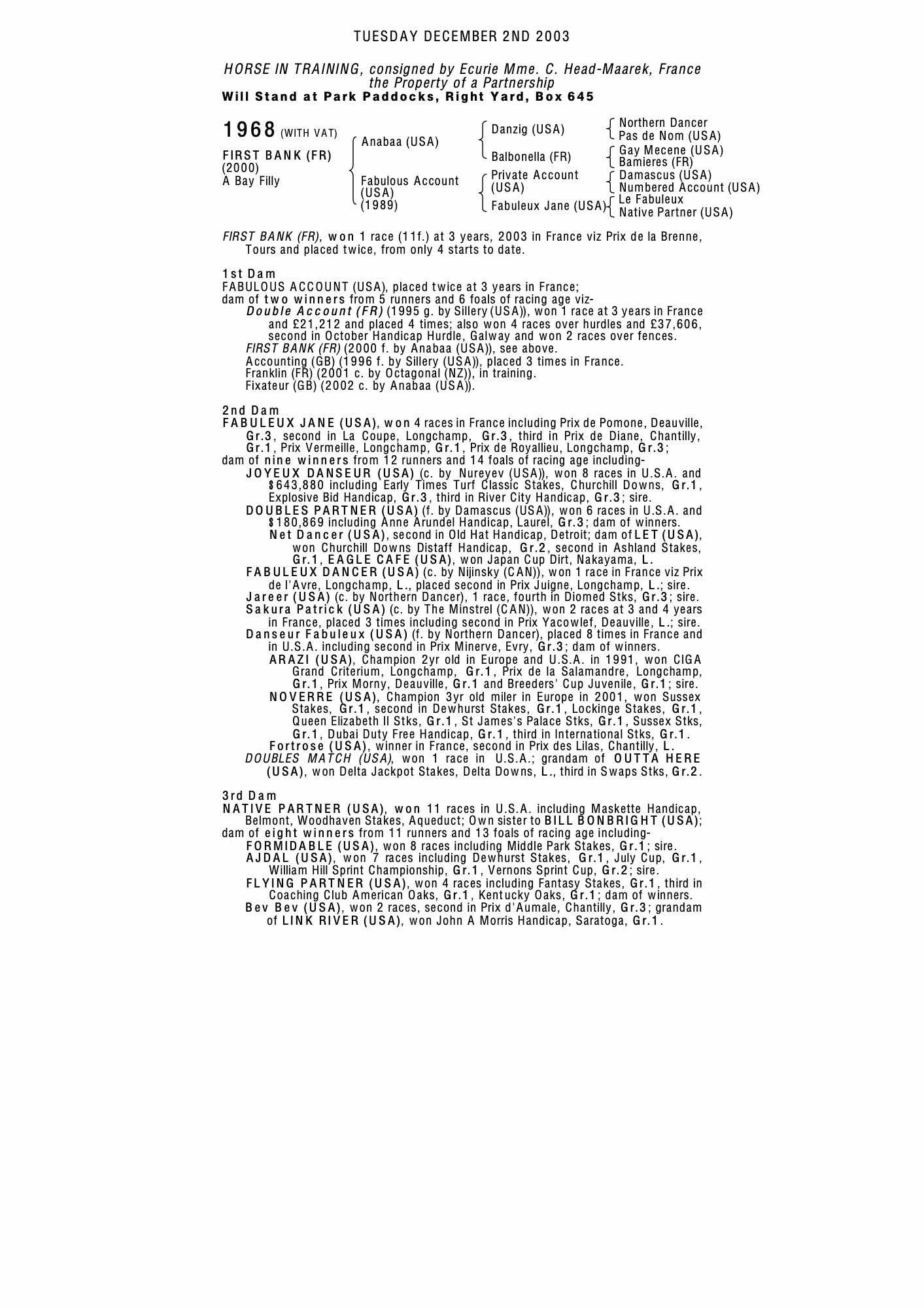December Mare Sale 1999 lot 2161 Accounting (GB) (F. by Sillery (USA)), Ecurie Mme. C. Head, France=>BBA (UK) 16,000 gns