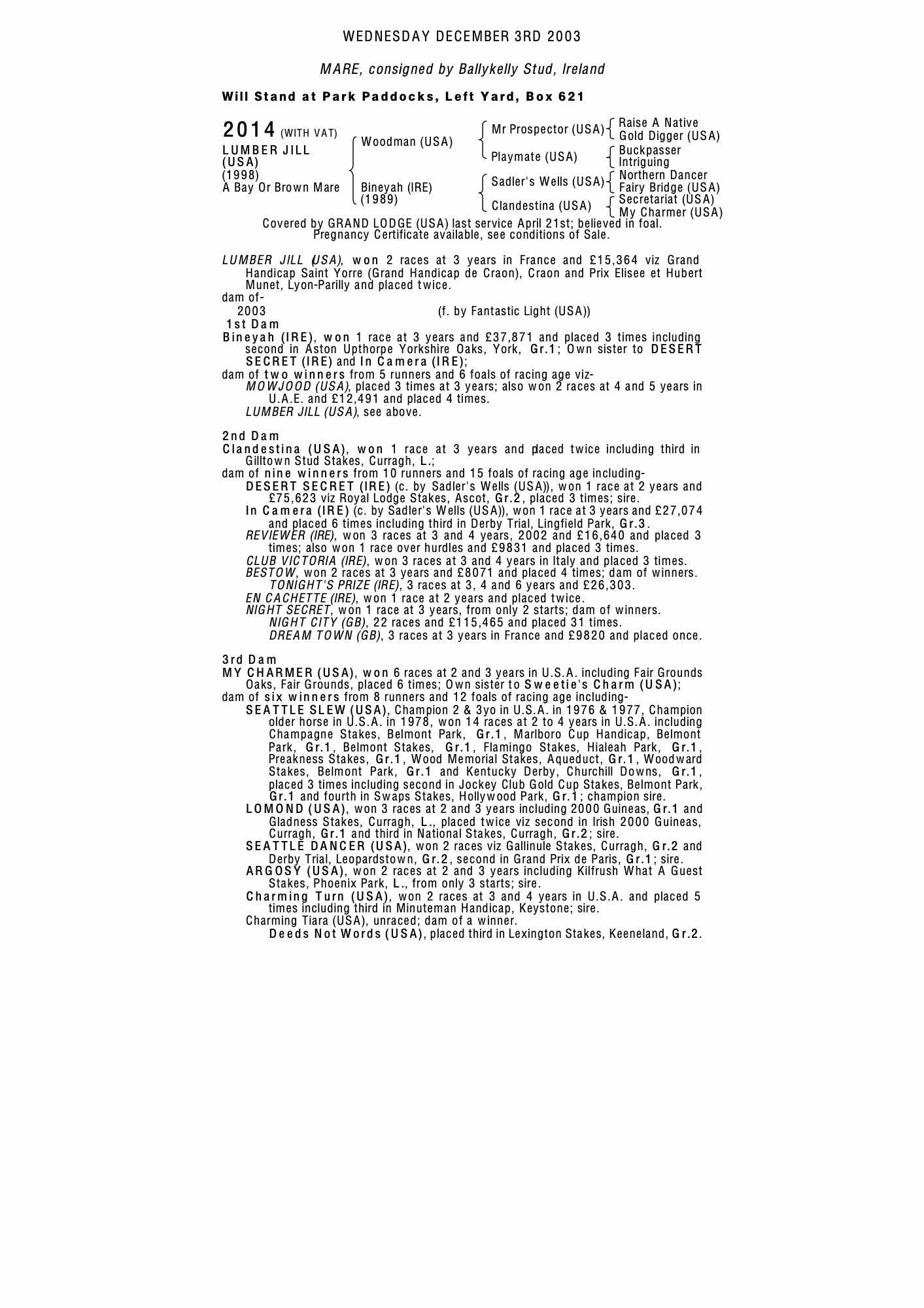 December Mare Sale 2001 lot 1922 Lumber Jill (USA) (F.), John Troy, Agent=>Foster Bloodstock 60,000 gns