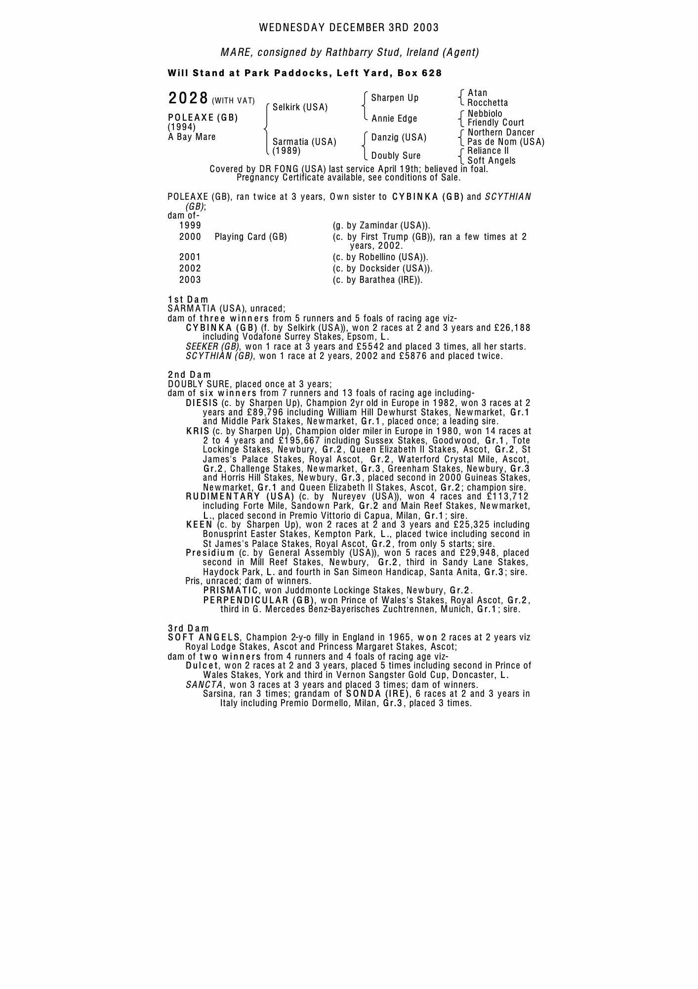 February Sale 2001 lot 16 Poleaxe (GB) (M.), Allan Perry, Agent=>Jimmy Byrne 20,000 gns