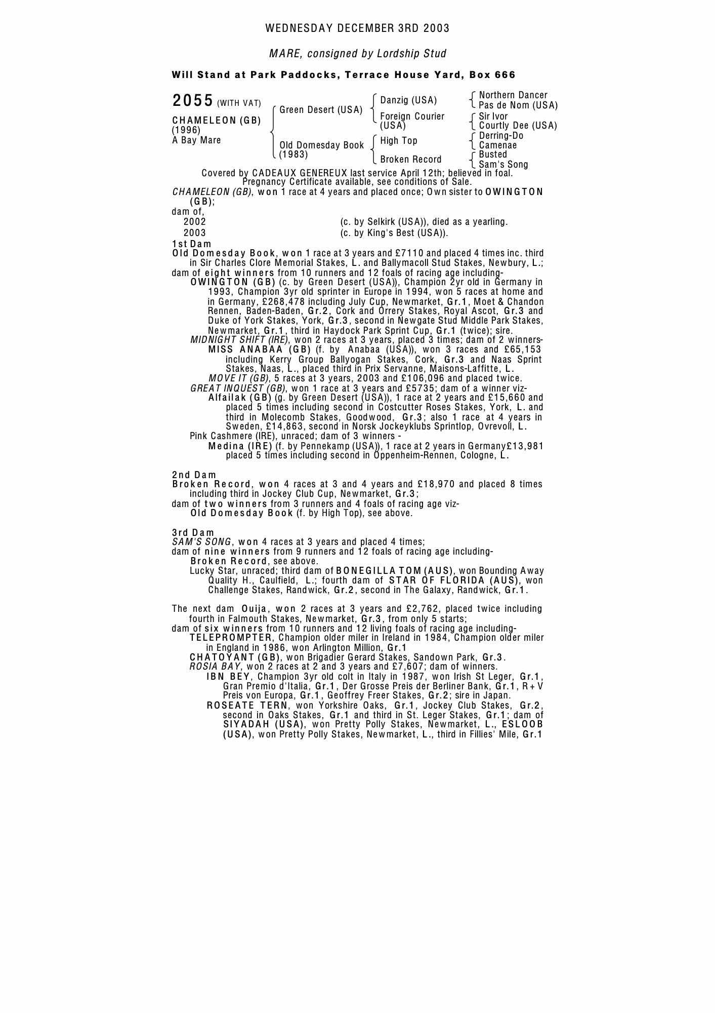 December Mare Sale 2002 lot 1666 Lady Helen (IRE) (M. by Salse (USA)), Voute Sales, Agent=>Lot Not Sold 23,000 gns