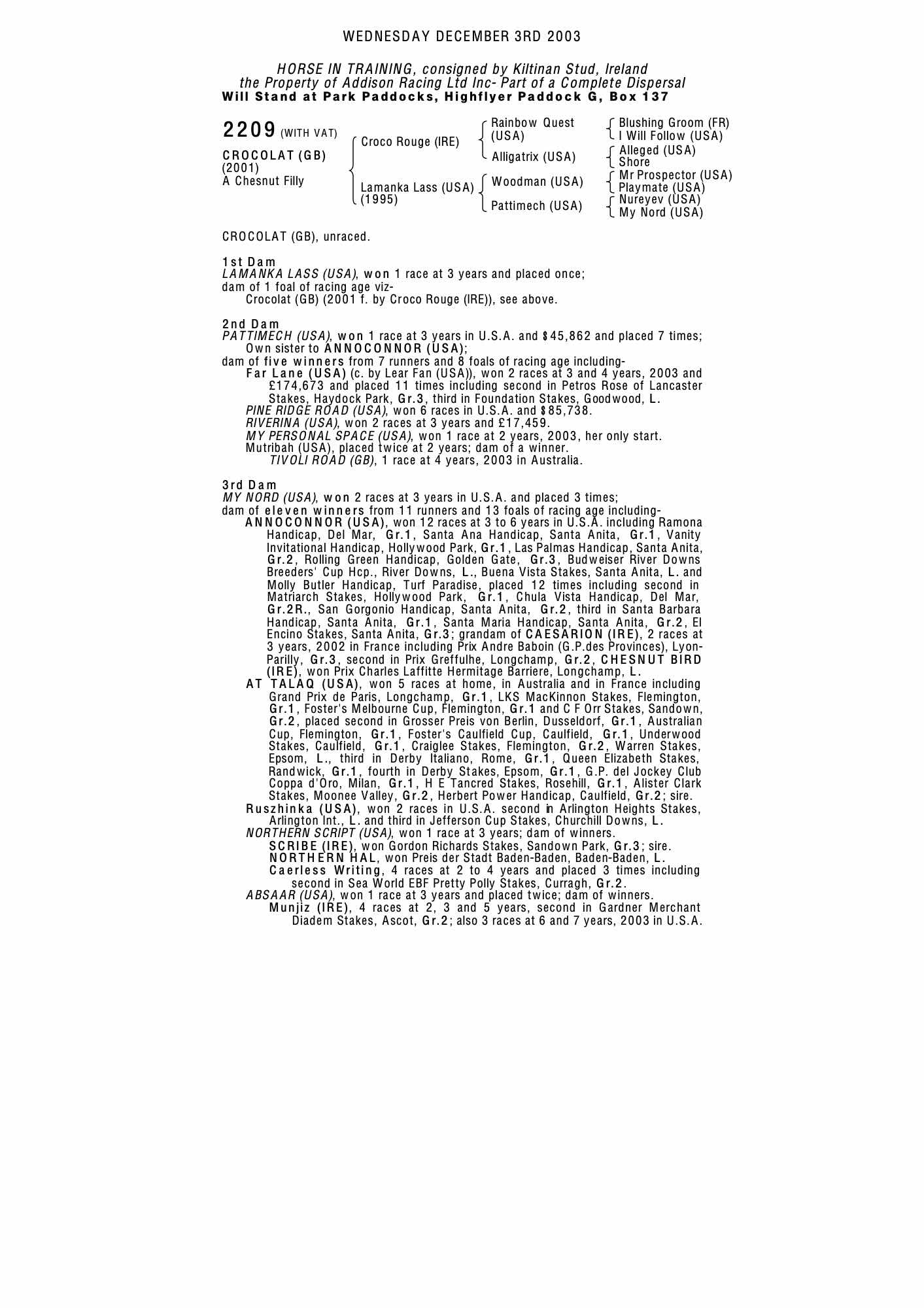 December Foal Sale 2003 lot 1017 C. by Singspiel (IRE) 2003, Watership Down Stud=>Rathmore Stud 24,000 gns