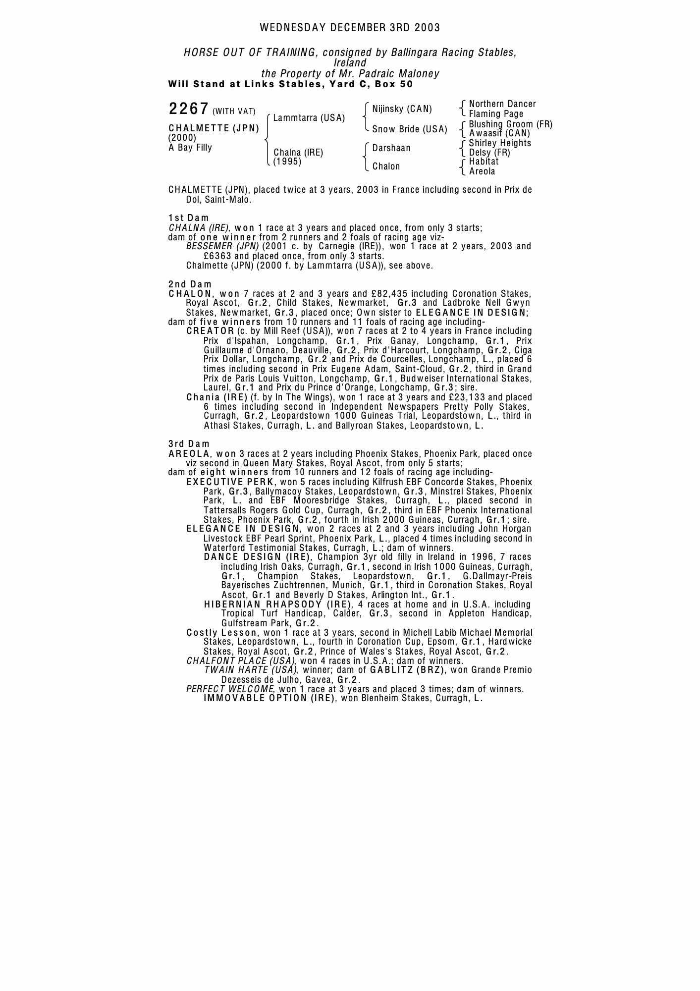 July Sale 2003 lot 136, Darley=>CBA 8,000 gns