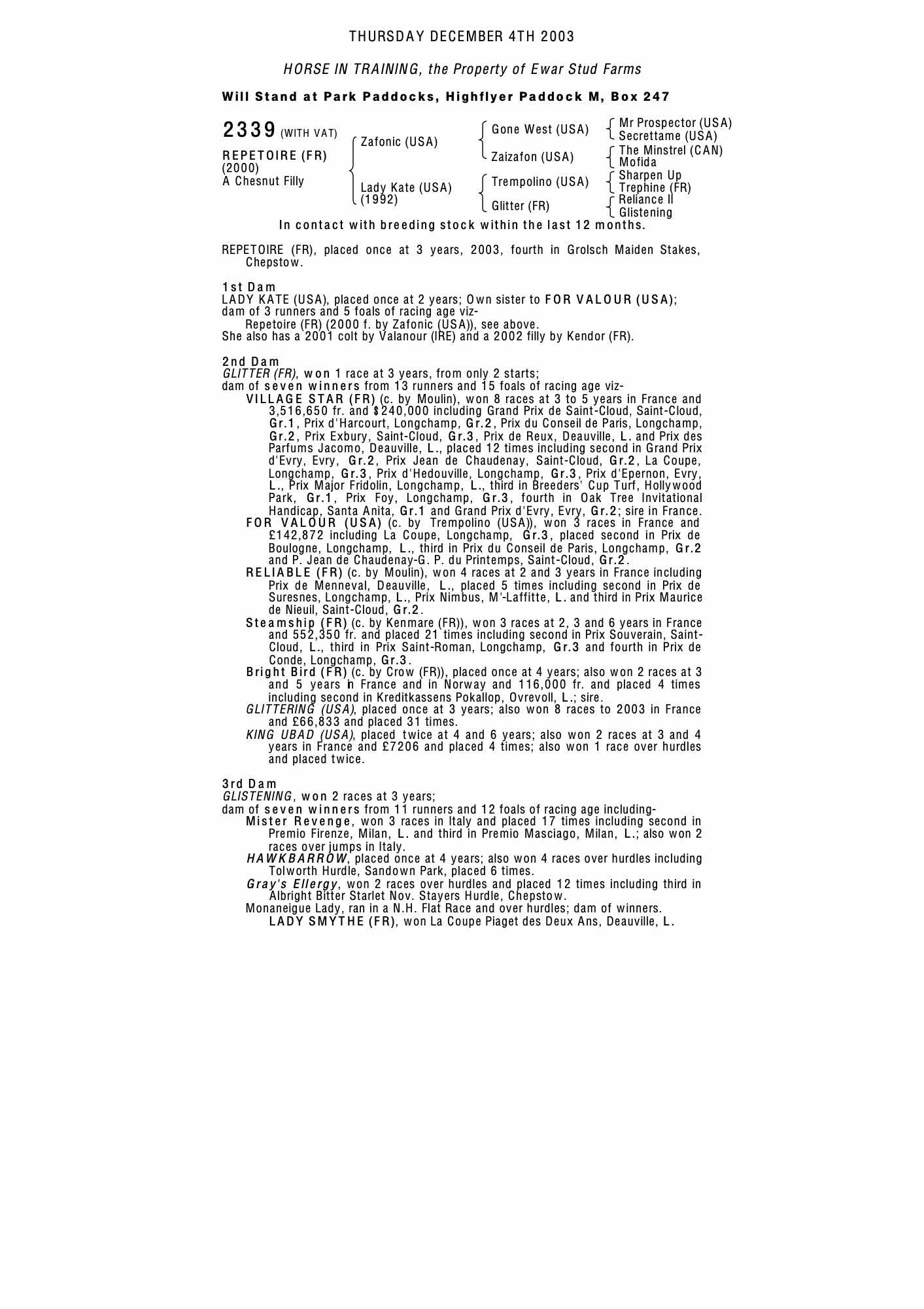 December Yearling Sale 2002 lot 235 C. by Valanour (IRE) 2001, Ewar Stud Farms, France=>Christos Terzis 2,500 gns