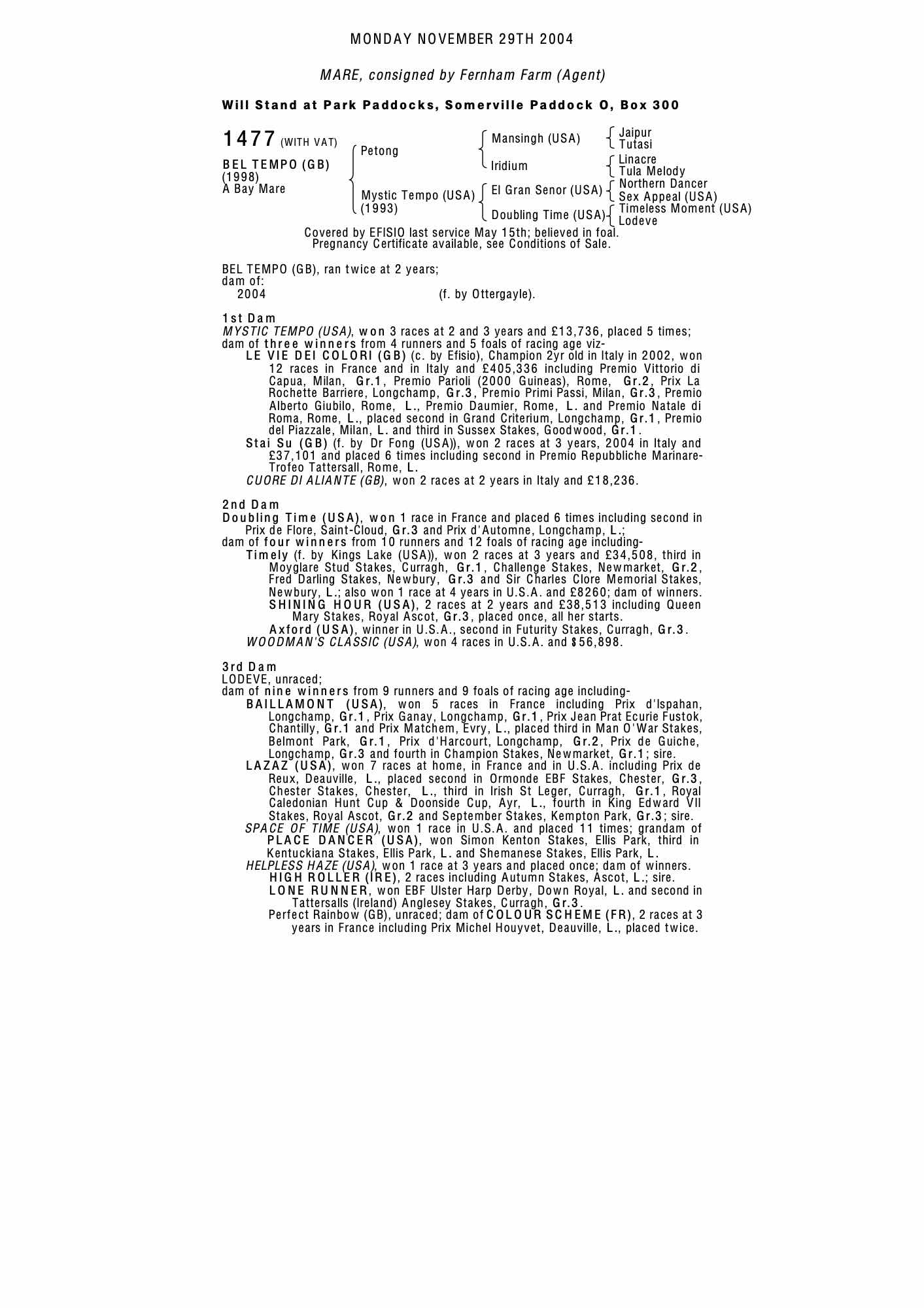 December Mare Sale 2003 lot 1867 Cuore Di Aliante (GB) (M. by Alhijaz (GB)), Kildaragh Stud, Ireland=>The National Stud 68,000 gns