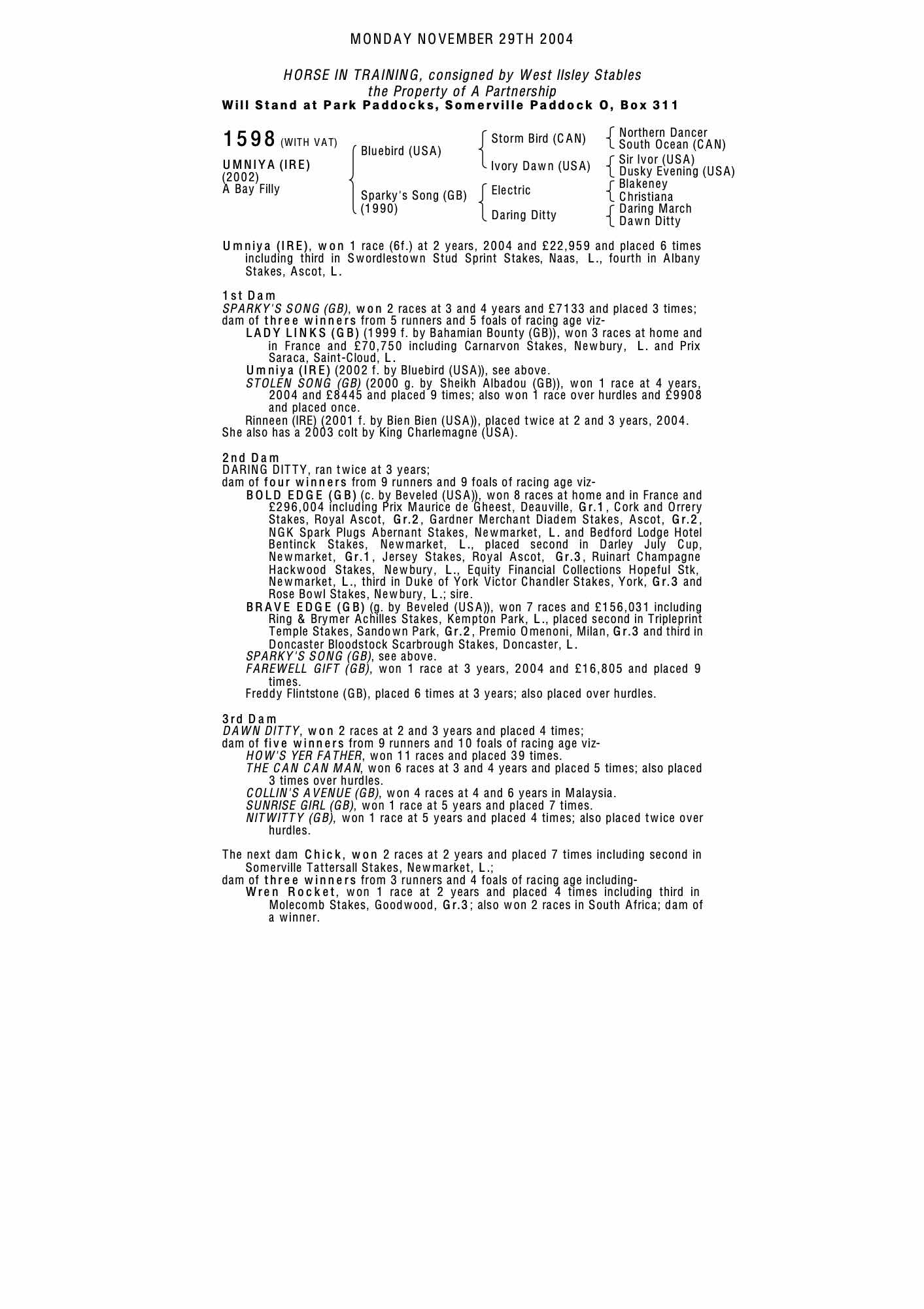 December Mare Sale 2002 lot 1508 Lady Links (GB) (F. by Bahamian Bounty (GB)), East Everleigh Stables=>Will Edmeades Bloodstock 105,000 gns