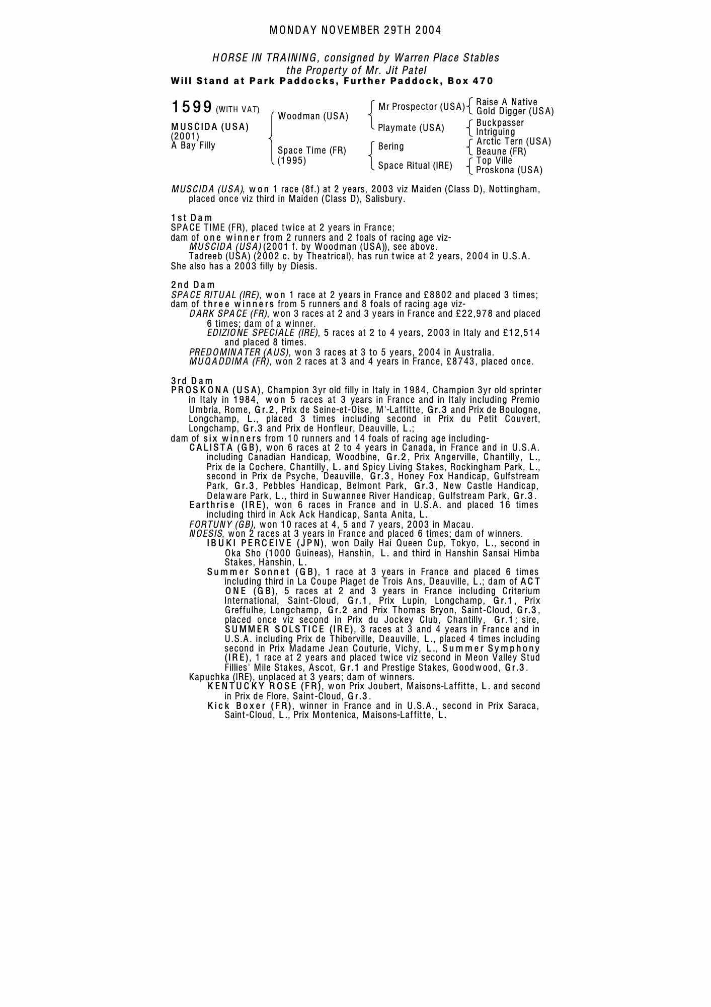 December Mare Sale 2017 lot 2345 Spia (USA) (M. by Diesis), Worsall Grange=>Lot Not Sold