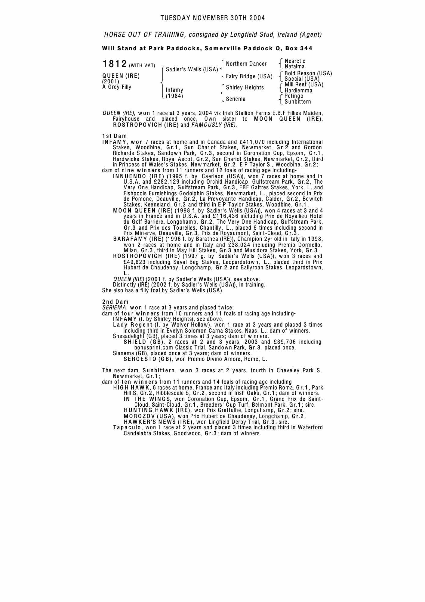 Consignor: Longfield Stud, Ireland
