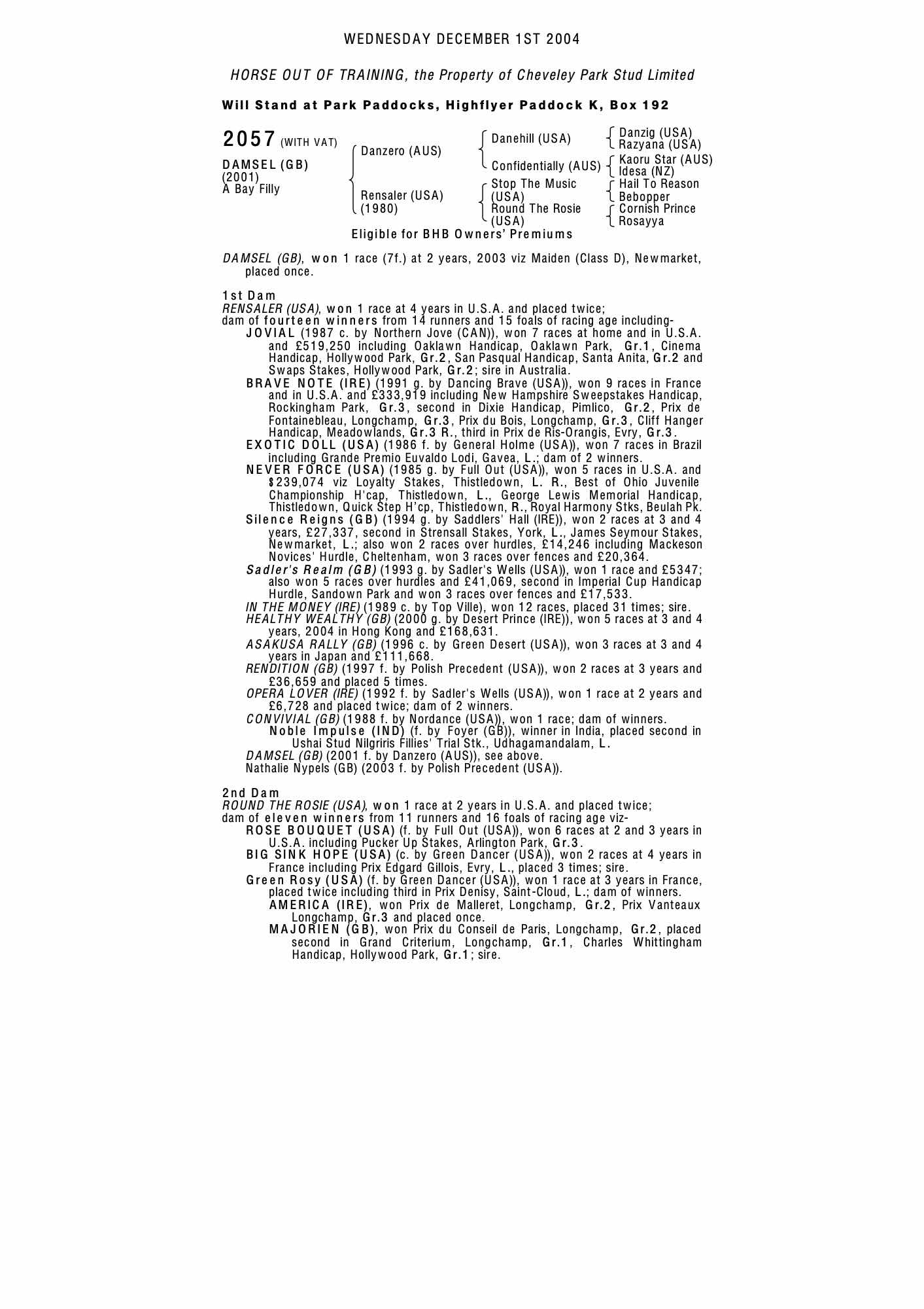 December Mare Sale 2001 lot 1734 Opera Lover (IRE) (M. by Sadler's Wells (USA)), Cheveley Park Stud=>Penfold Bloodstock 37,000 gns
