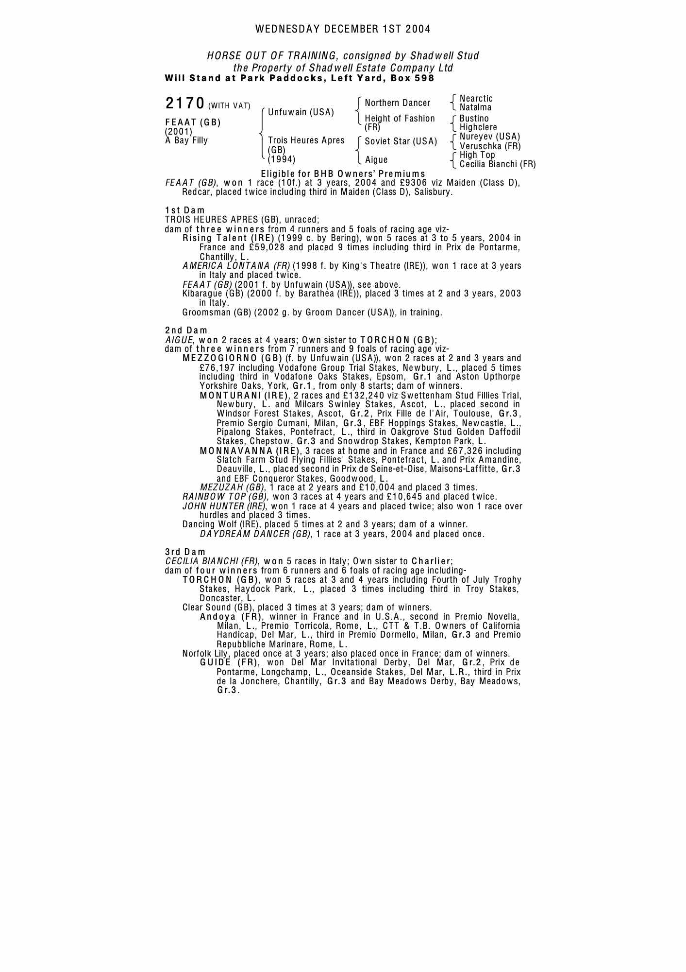 October Yearling Sale 2002 lot 149 F. 2001, Glebe Stud=>Shadwell Estate Company 190,000 gns