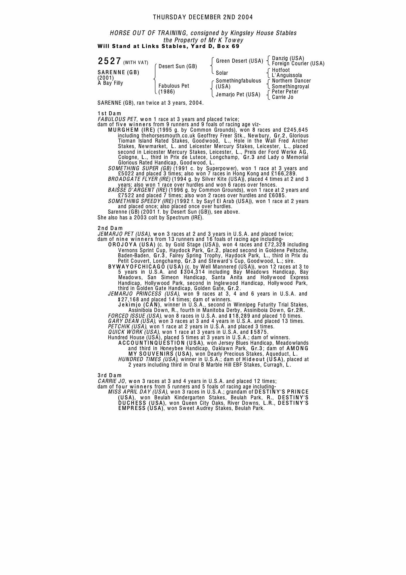 December Mare Sale 2001 lot 2169 Theroseofloughrea (IRE) (F. by Lake Coniston (IRE)), Burton Agnes Stud, Agent=>McKeever St Lawrence 800 gns