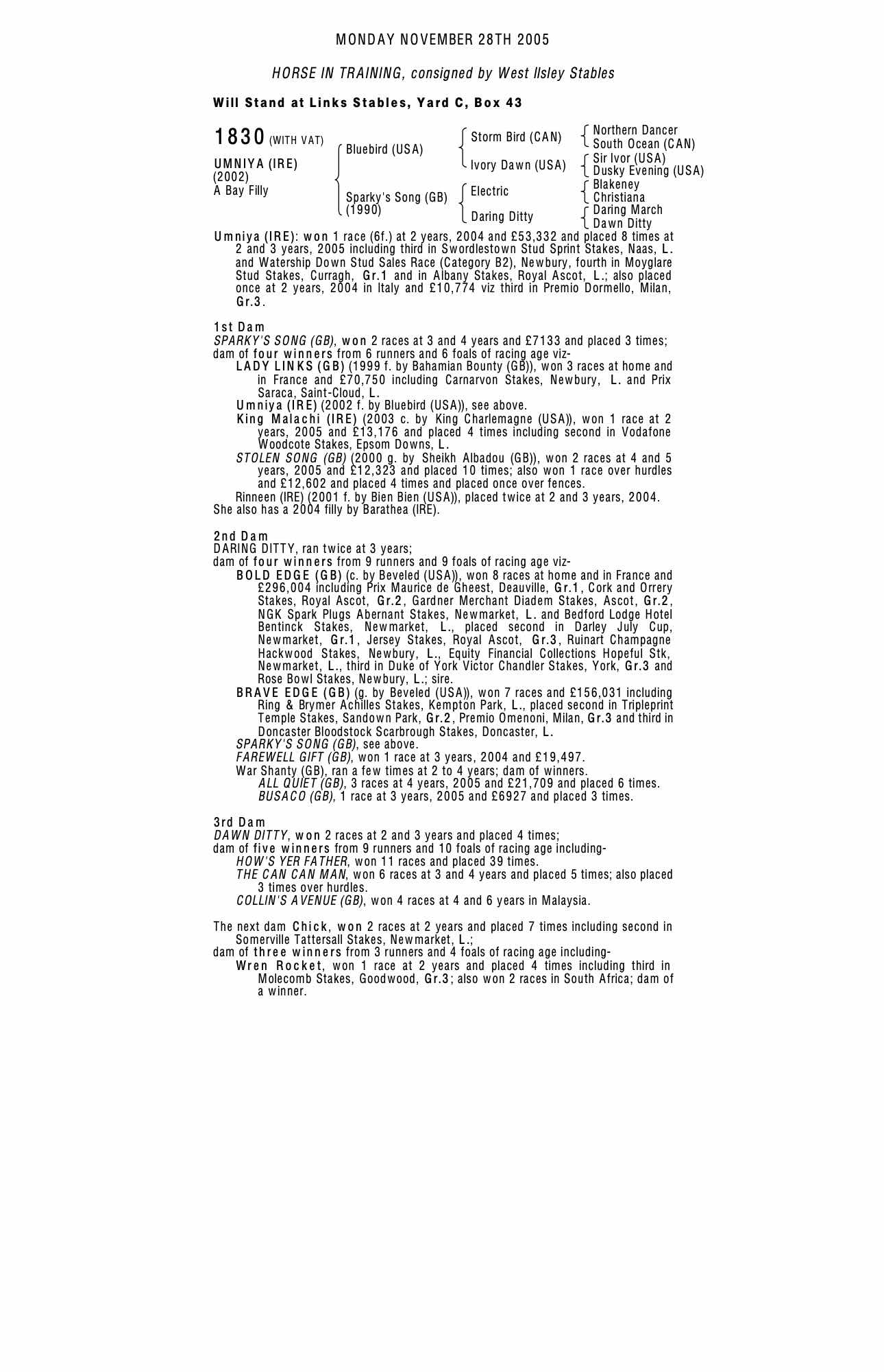December Mare Sale 2004 lot 1598, West Ilsley Stables=>Vendor 125,000 gns
