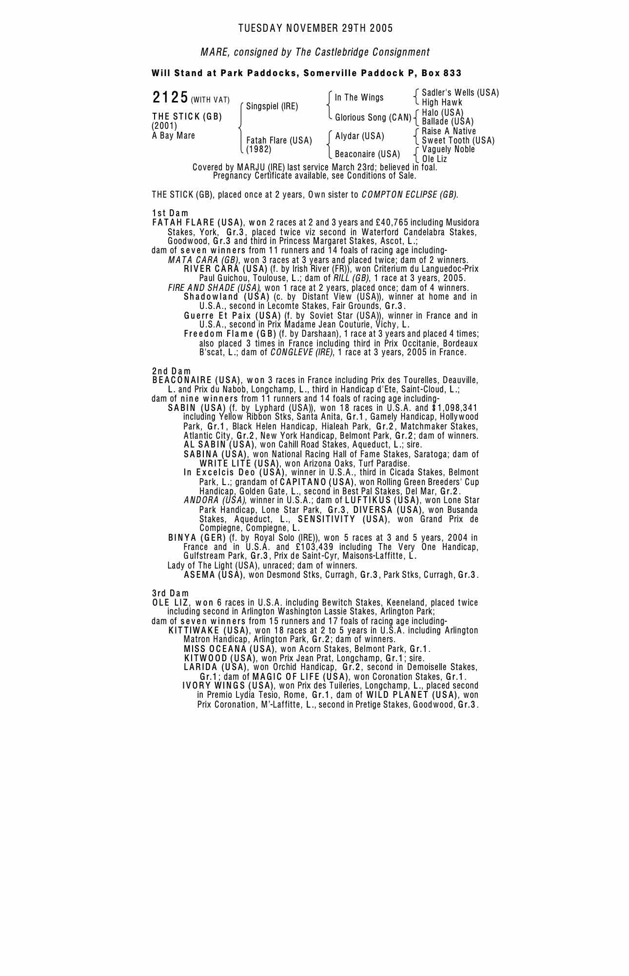 October Yearling Sale 2000 lot 807 F. by Hernando (FR) , Grange Stud (UK)=>J Oxx 22,000 gns