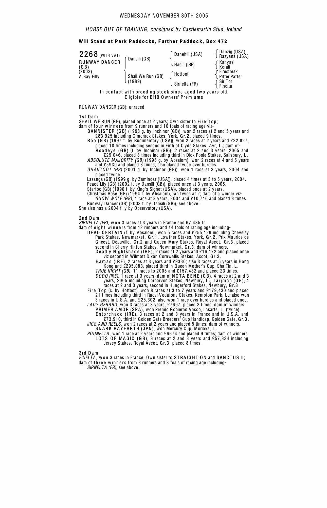 October Yearling Sale, Book 2 2005 lot 1167 F. by Observatory (USA) 2004, Jamie Railton, Agent=>Kern/Lillingston Association 52,000 gns