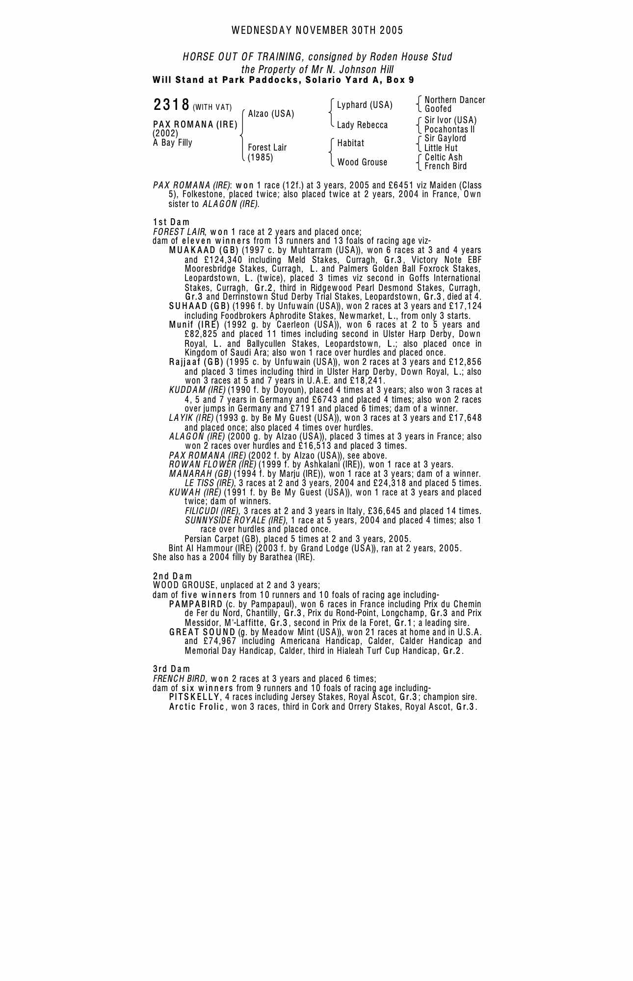December Mare Sale 2013 lot 2251 Rowan Flower (IRE) (M. by Ashkalani (IRE)), Stanley House Stud=>Lot Not Sold
