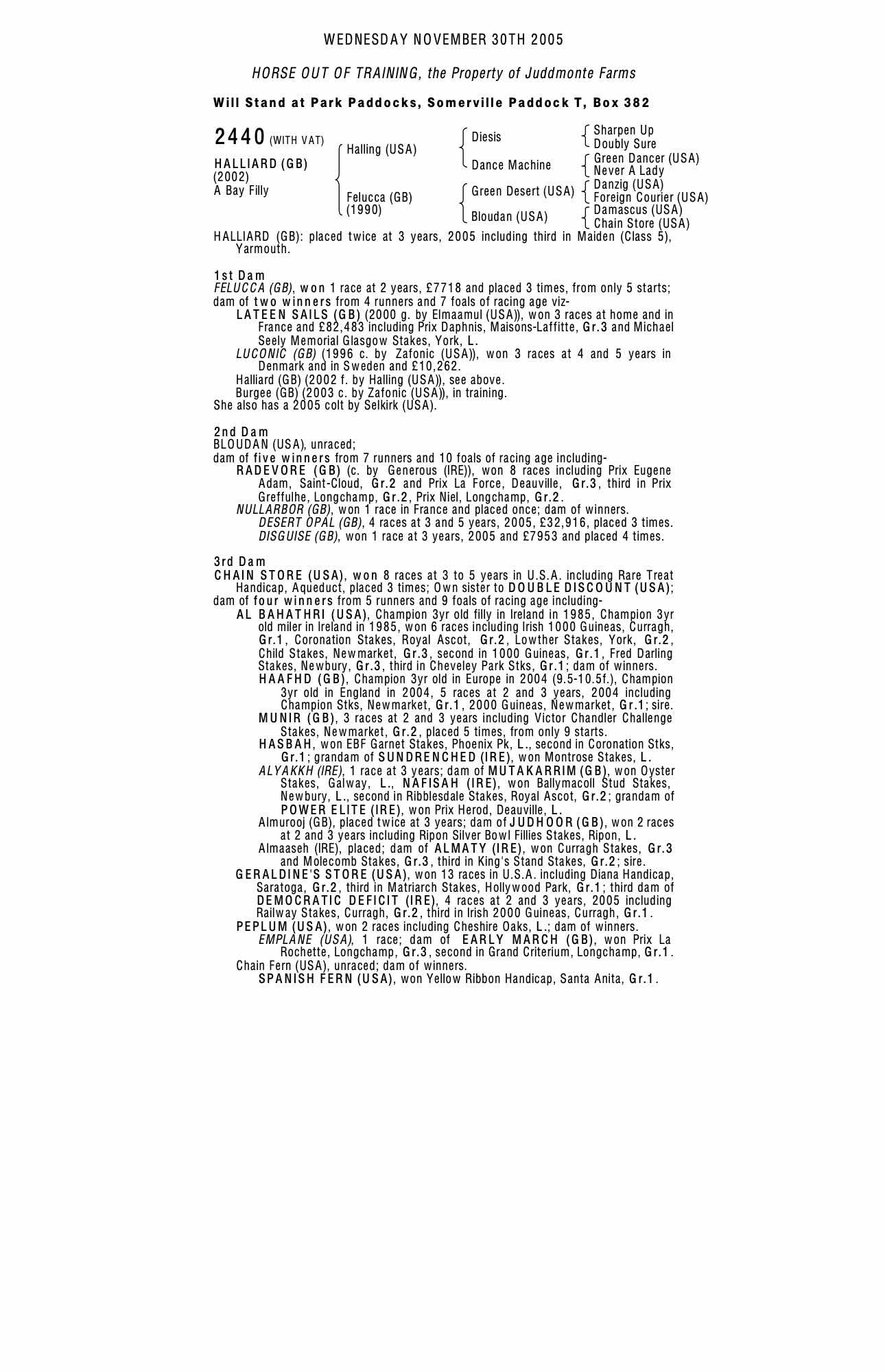 December Mare Sale 2004 lot 2127 White Sail (GB) (F. by Polar Falcon (USA)), Juddmonte Farms=>Dwayne Woods 12,000 gns
