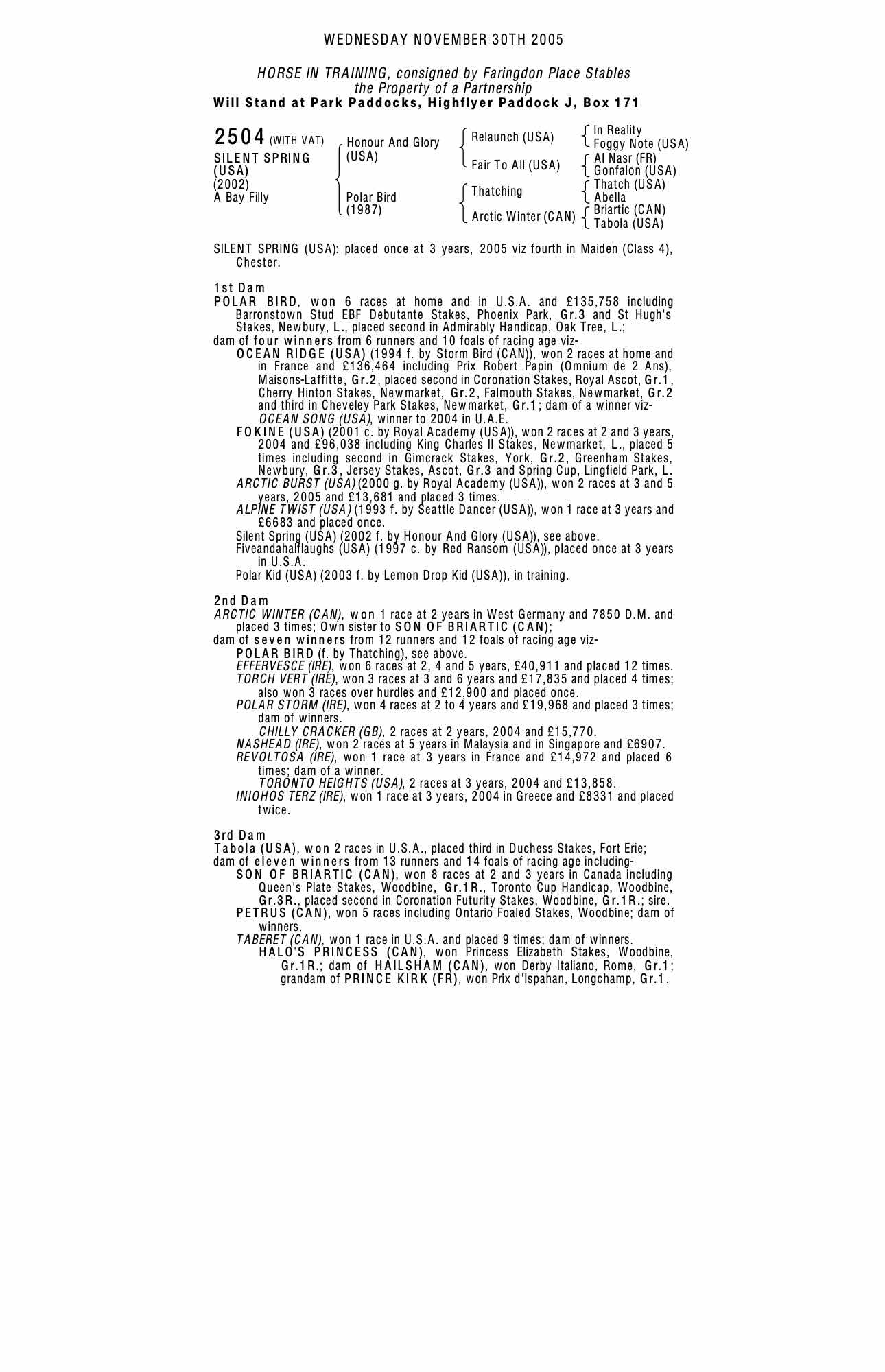 December Mare Sale 1999 lot 1808 Arctic Bird (USA) (M. by Storm Bird (CAN)), Swettenham Stud=>Mercury Bloodstock 30,000 gns
