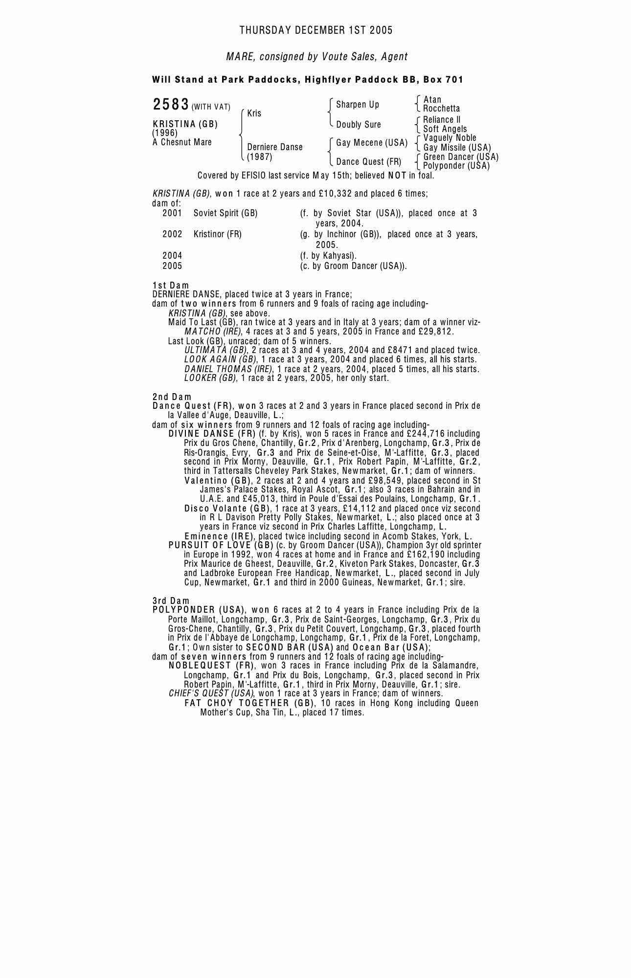 December Mare Sale 2006 lot 2437, Far Westfields Stud=>Follow the Flag Partnership 9,000 gns