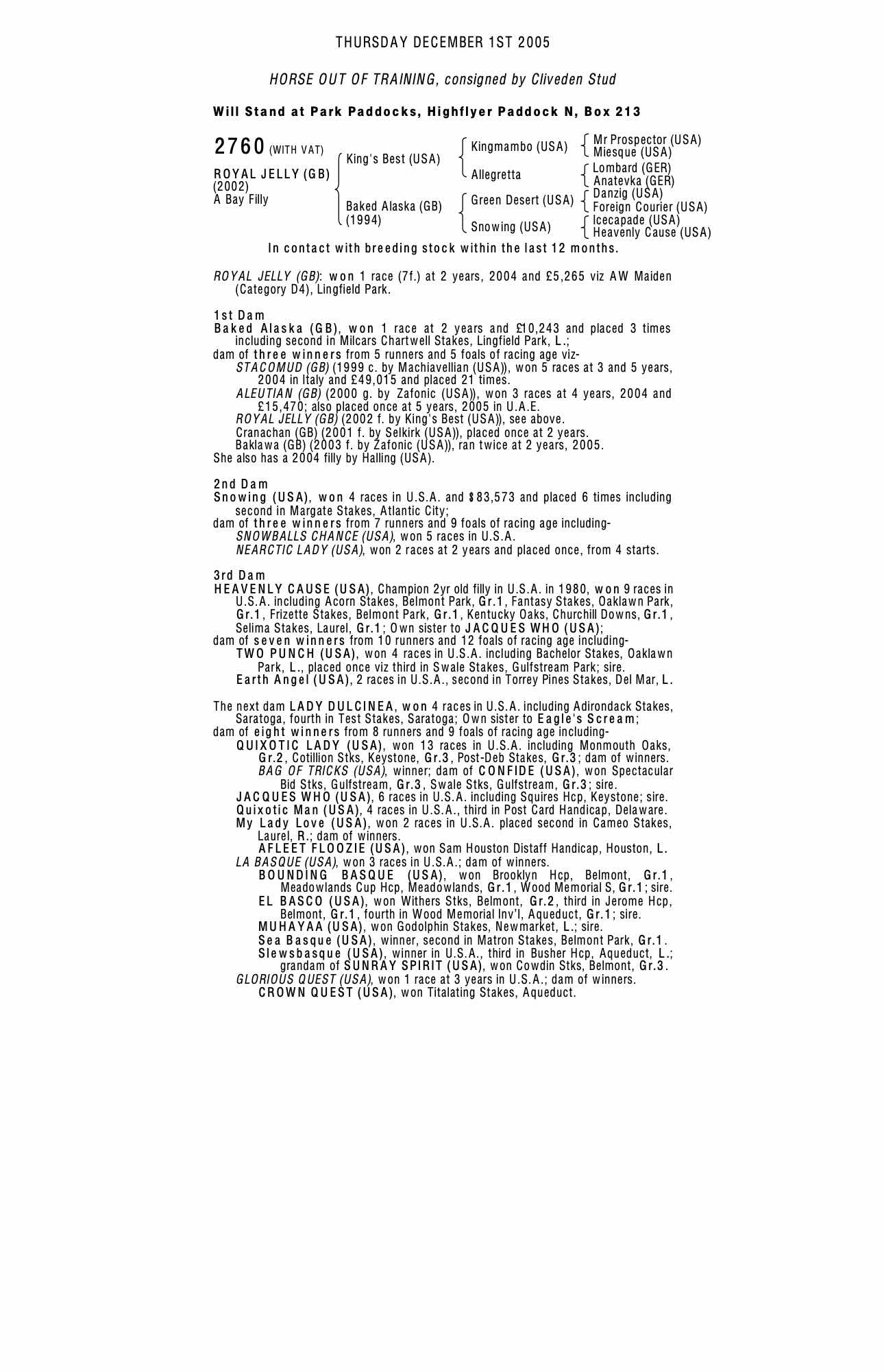 December Mare Sale 2005 lot 2893 Baklawa (GB) (F. by Zafonic (USA)), Newlands Stables=>BBA Germany 3,500 gns