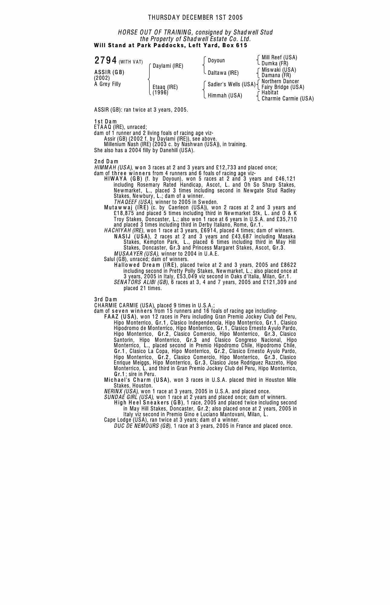 October Yearling Sale, Book 2 2004 lot 942 C. by Nashwan (USA) 2003, Croom House Stud, Ireland=>Vasili Kildau 5,500 gns
