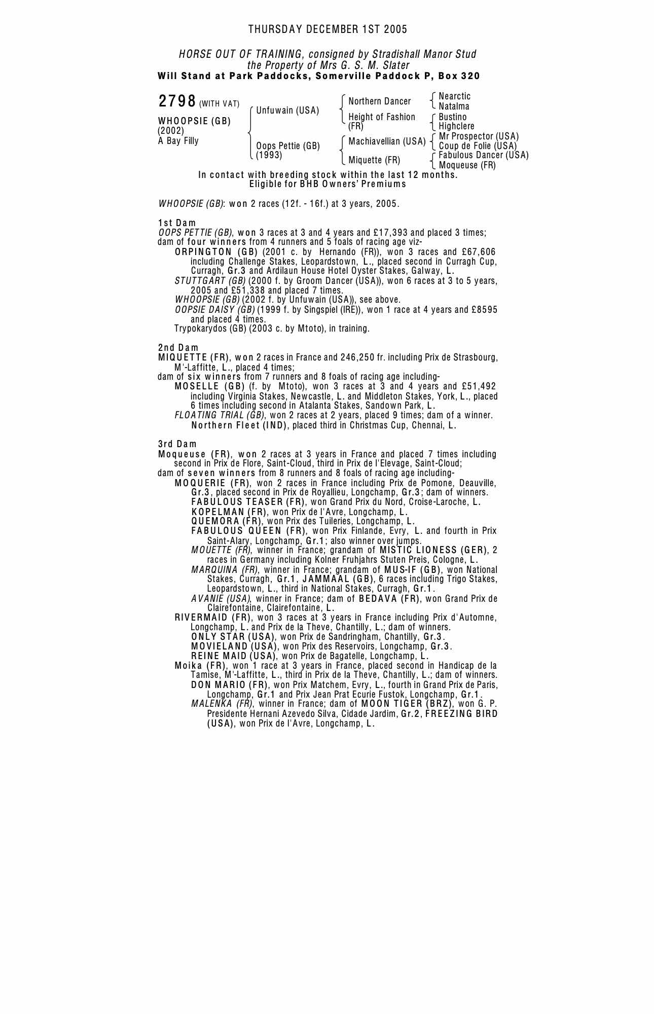 December Mare Sale 2003 lot 2260 Oopsie Daisy (GB) (F. by Singspiel (IRE)), Pegasus Stables=>Bodil Hallencreotz 10,500 gns