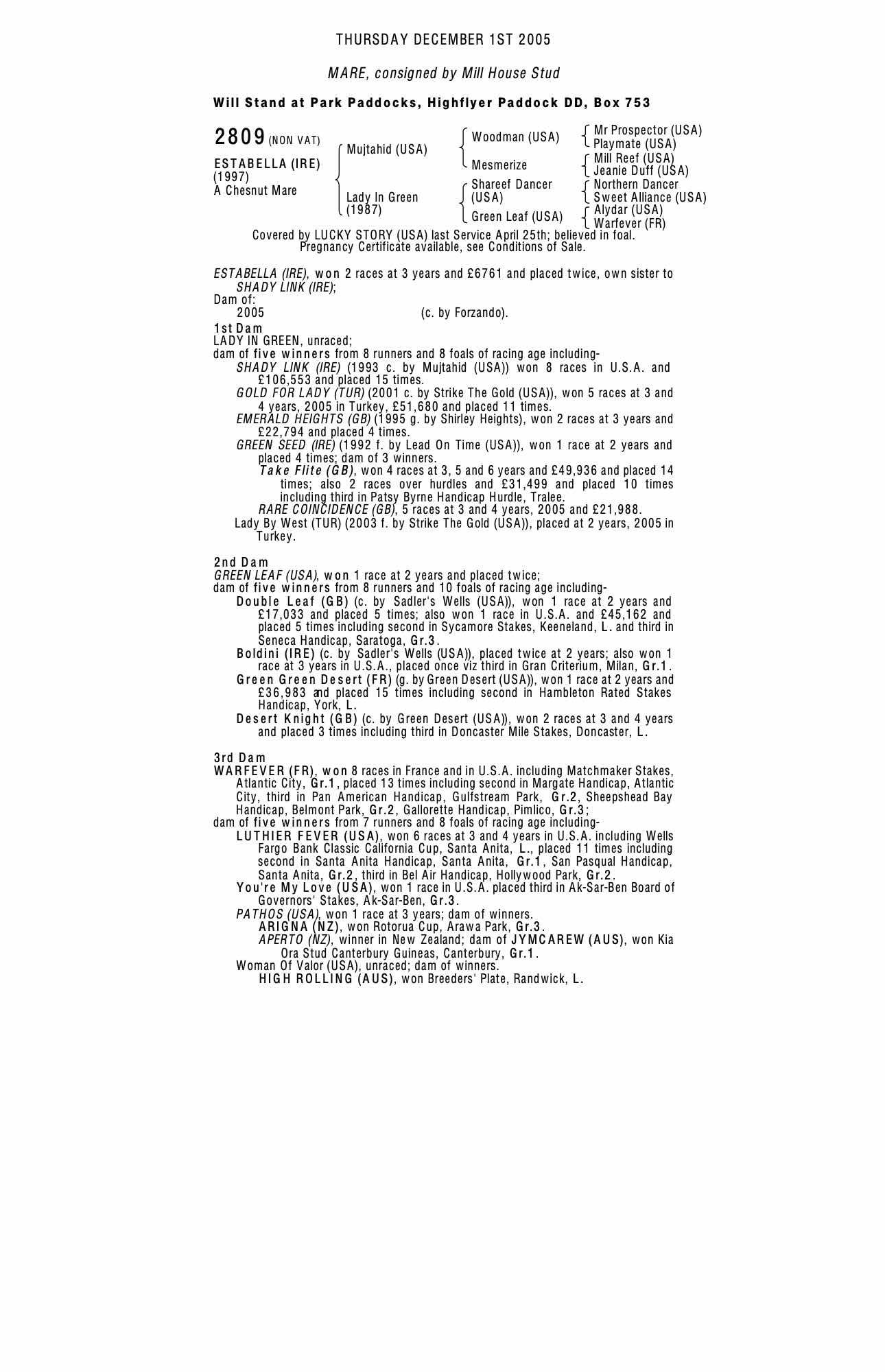 December Mare Sale 2000 lot 2164 Green Seed (IRE) (M. by Lead on Time (USA)), Lawers Stud Co. Ltd=>Cash 2,000 gns