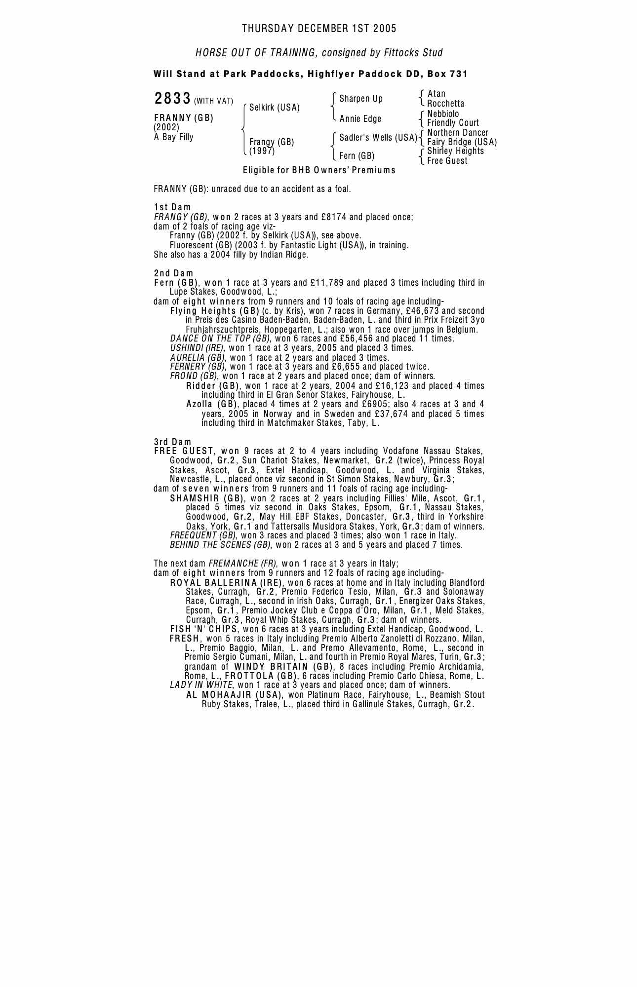 July Sale 2005 lot 470, Bedford House Stables=>C Dwyer 6,000 gns