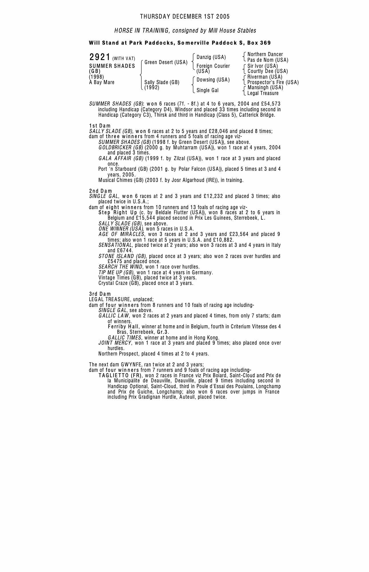 Autumn Horses in Training Sale 2001 lot 906 Summer Shades (GB) (F.), Elliotts Stables=>WM Brisbourne 800 gns