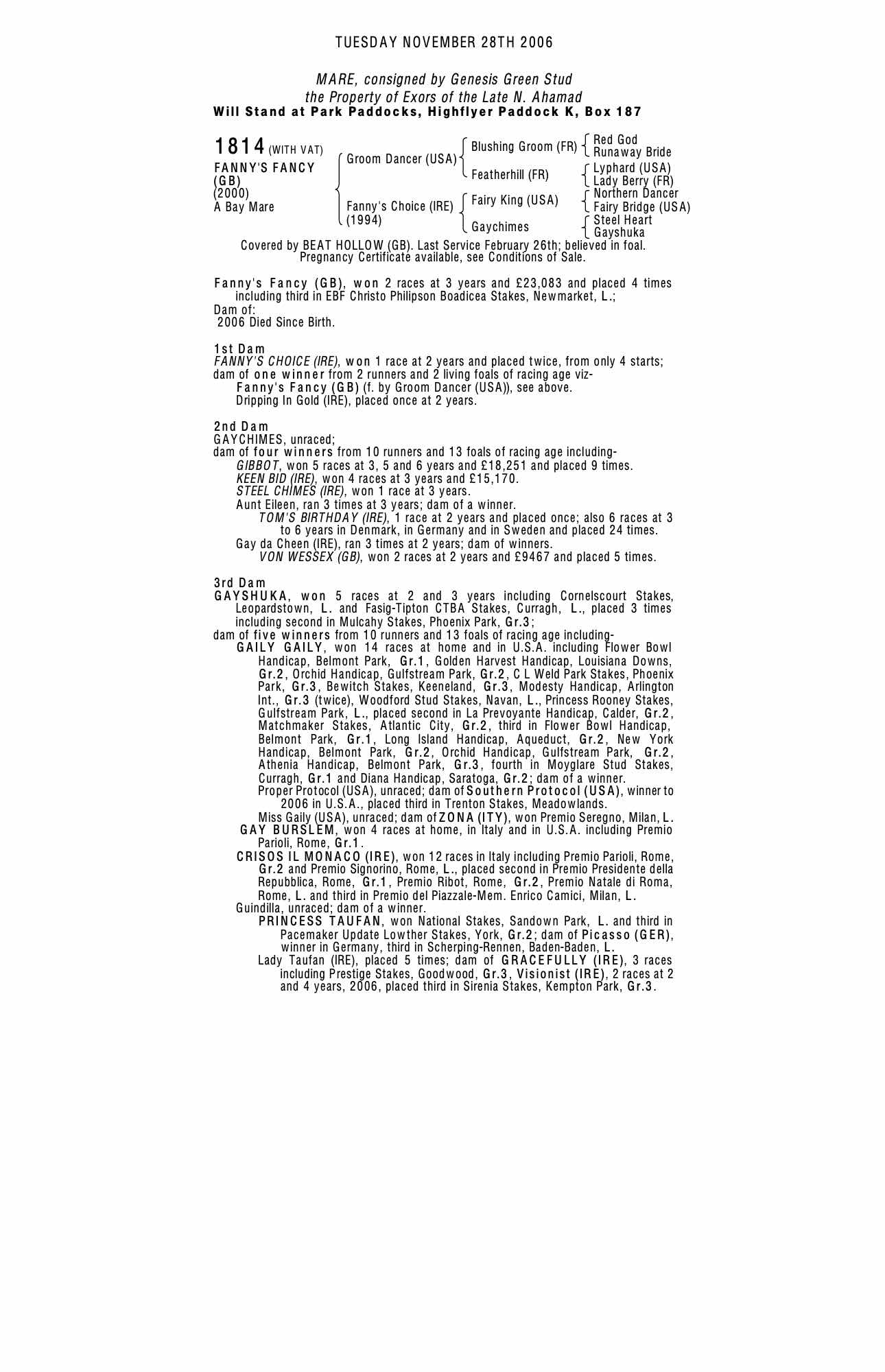 July Sale 2012 lot 52, Genesis Green Stud=>Vendor 4,000 gns