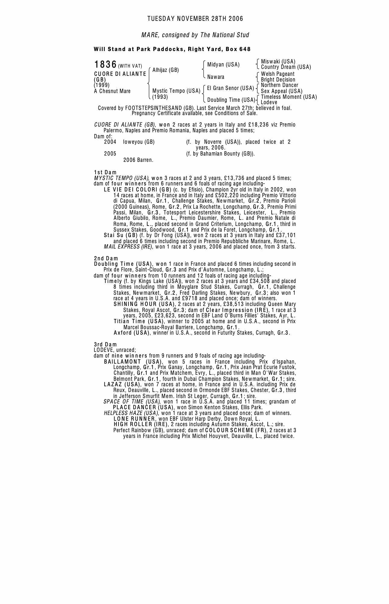 December Mare Sale 2003 lot 1867, Kildaragh Stud, Ireland=>The National Stud 68,000 gns