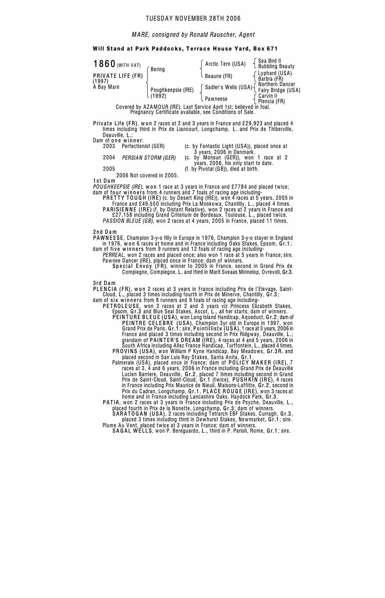 December Mare Sale 2001 lot 1808 Private Life (FR) (F.), Voute Sales, Agent=>Anthony Stroud Bloodstock 140,000 gns