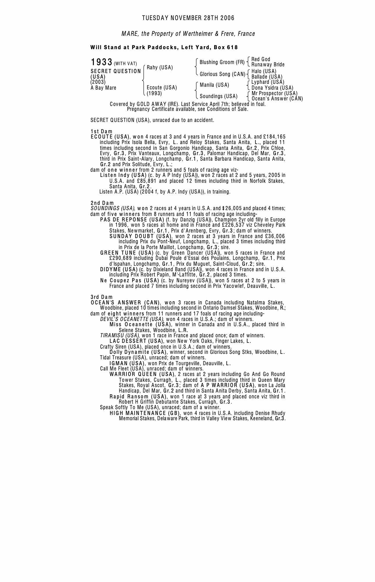 December Mare Sale 2004 lot 1895 Ecoutila (USA) (M.), Wertheimer & Frere=>BBA Ireland 170,000 gns