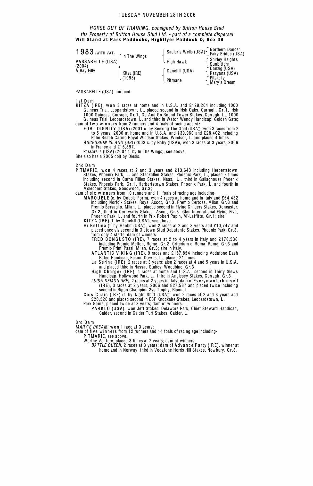 Autumn Horses in Training Sale 2005 lot 87 Wicklow (USA) (C. by Diesis), Ballydoyle Stables, Ireland=>John Thompson 7,000 gns