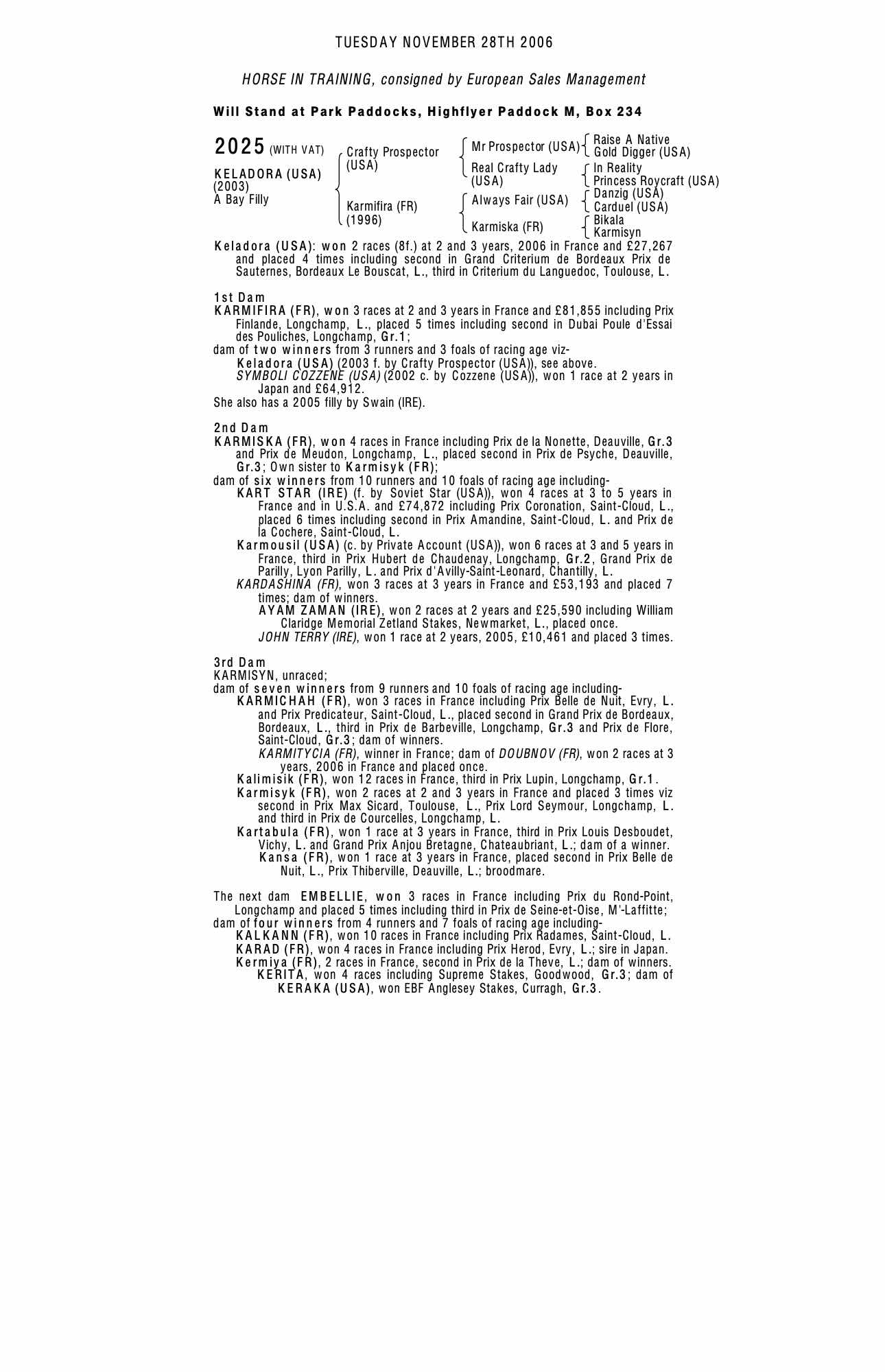 December Mare Sale 2022 lot 2096 Karmadal (IRE) (M. by Shamardal (USA)), Baroda Stud, Ireland=>Coseda 6,000 gns