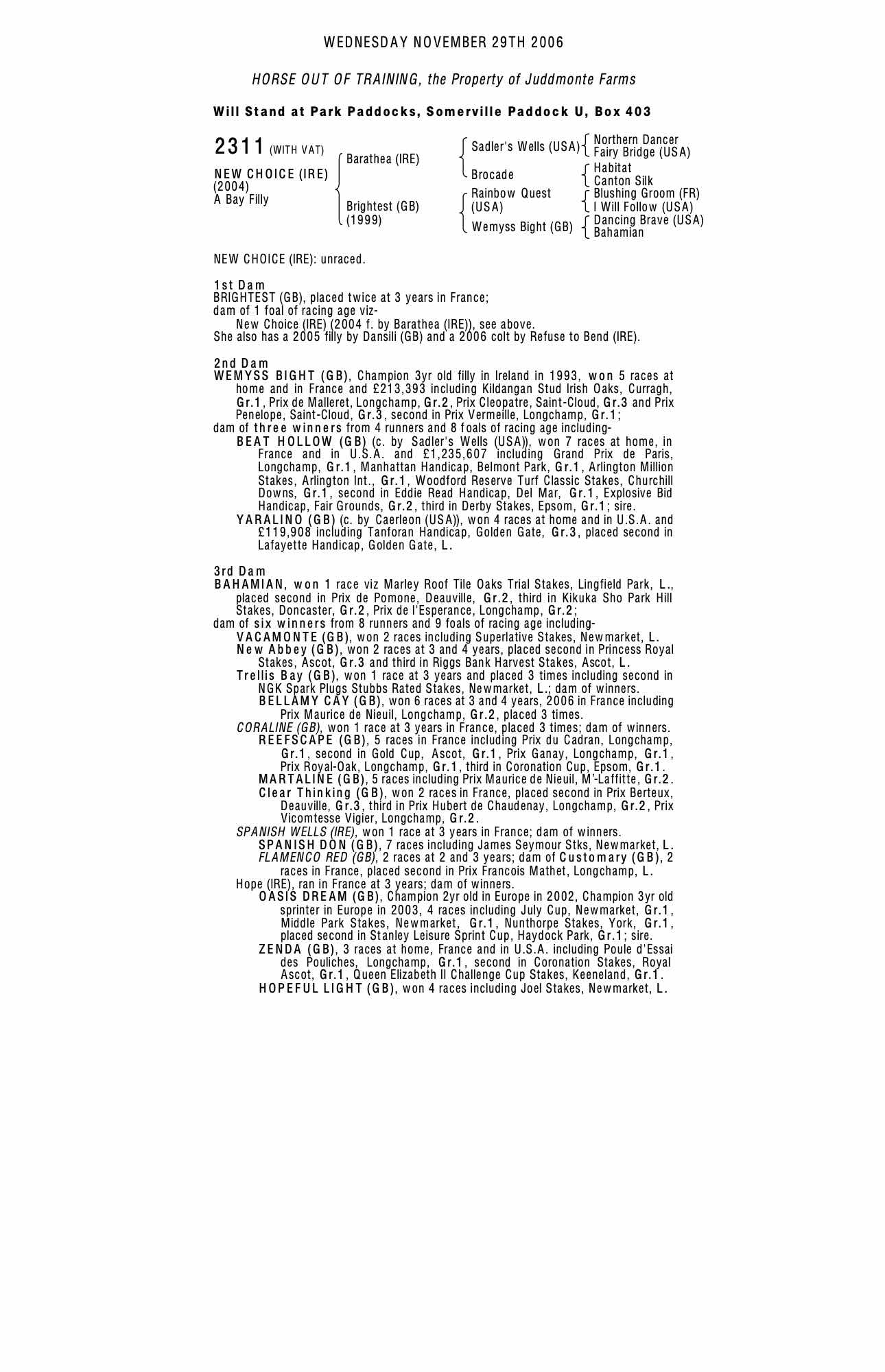 October Yearling Sale, Book 2 2006 lot 988 F. by Dansili (GB) 2005, Corduff Stud, Ireland (Agent)=>Margaret O'Toole 160,000 gns