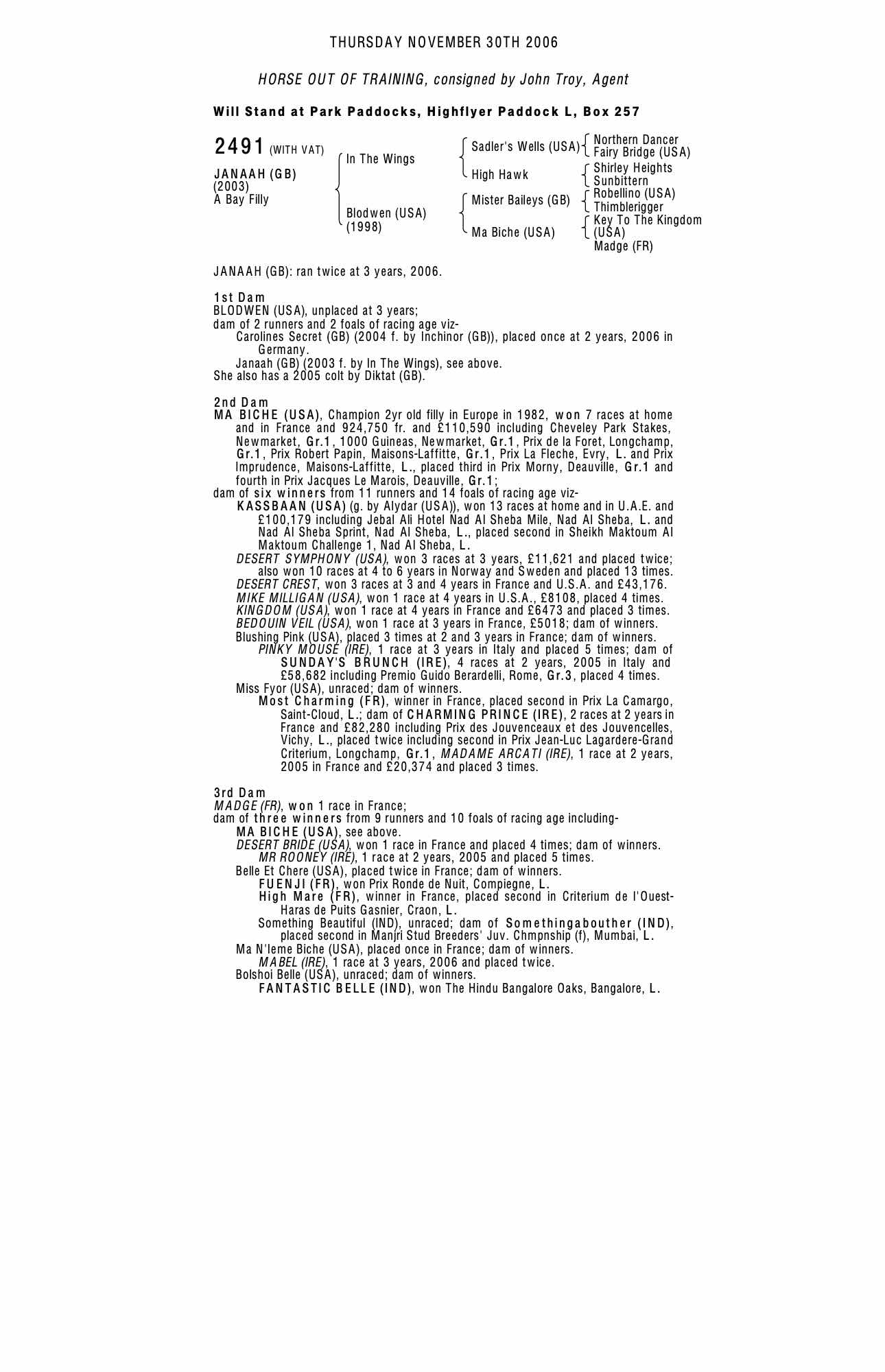 October Yearling Sale, Book 2 2004 lot 1182 F. 2003, Usk Valley Stud=>Darley Stud Management 24,000 gns